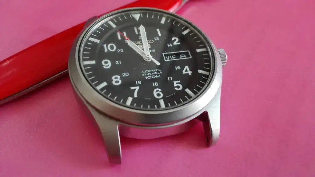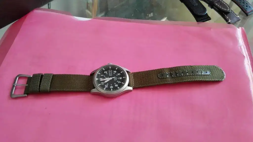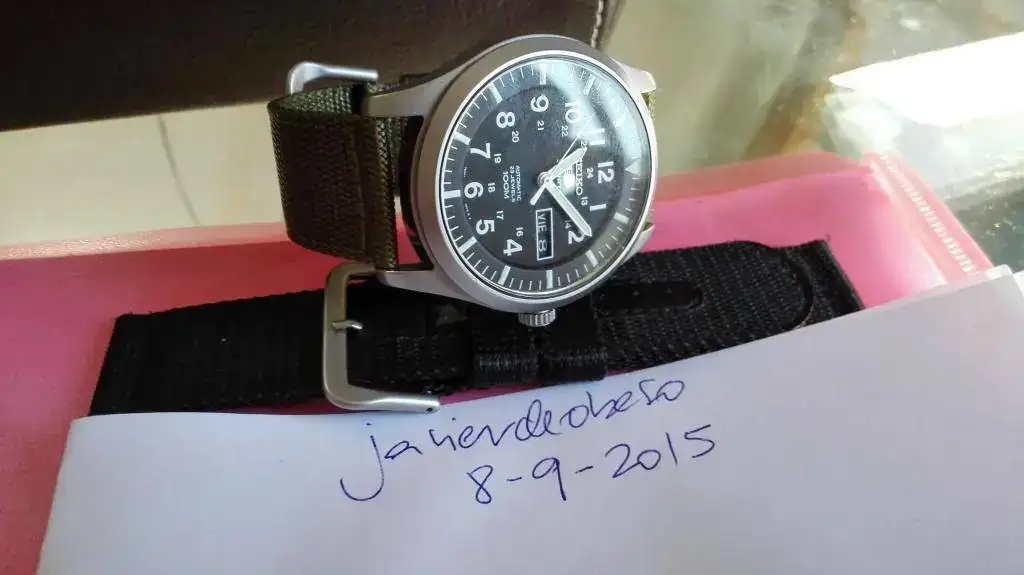 La correa verde original de seiko tendrá 5 puestas como mucho, y la negra esta bastante mas usada.