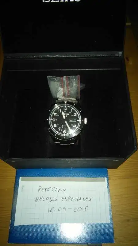 Como no consigo encontrar feeling con este reloj lo saco de nuevo, y definitivamente, a la venta (aunque el reloj en sí es precioso). El reloj fue comprado en noviembre de 2015 en la Boutique de Madrid, por lo que aún le queda año y pico de garantía, y está prácticamente nuevo, ya que apenas me lo he puesto. Lo más destacable son unas pequeñas marcas en la parte trasera de una las asas, fruto de un cambio de correa que le hice (manazas que es uno) y algún que otro pelillo en el armis, pero por lo demás está perfecto. El armis es macizo, salvo los terminales, que son de chapa, y el cristal es Hardlex abombado. Monta el calibre 4R36, con remonte manual y parada de segundero, y funciona perfectamente, no se va más allá del minuto semanal. Por lo demás, pues es un reloj al que le queda bien casi todo: armis, correas de piel, natos, etc. Muy versátil en conjunto.