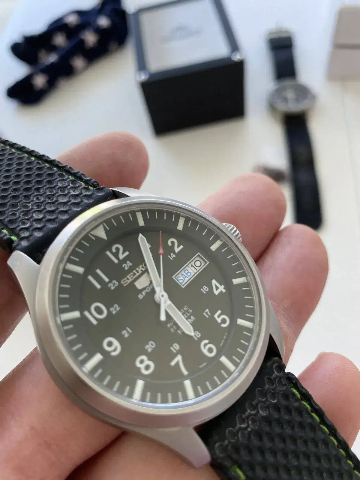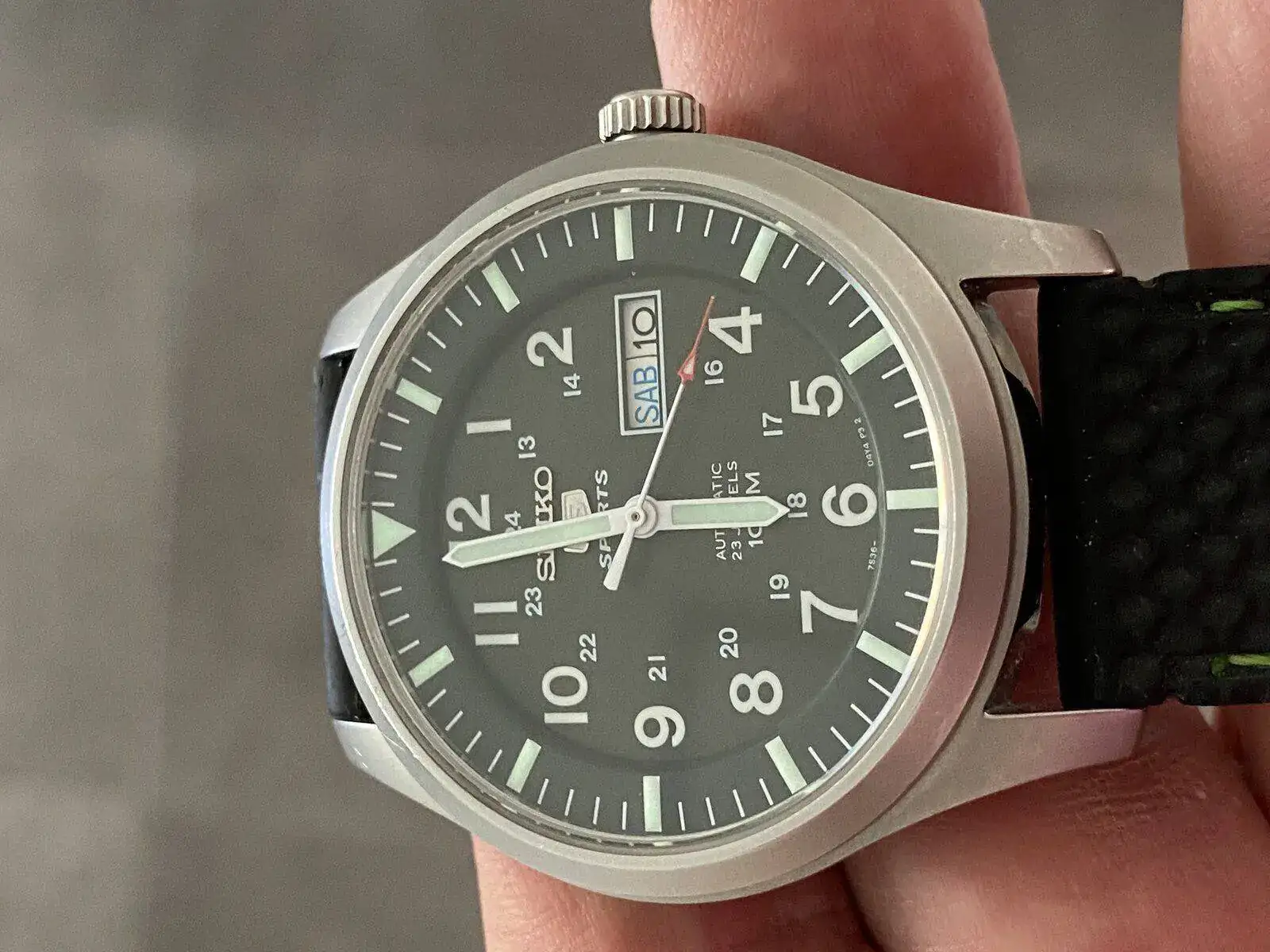 Buenos dias saco a venta sin cambios este Seiko Military automatico esfera verde de 42mm al que se le puso en relojeria cristal de zafiro, excelente estado