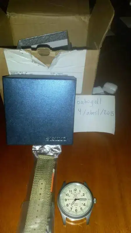 Pongo en venta este Seiko Military. El reloj fue comprado a finales de diciembre del 2013 y me llegó a finales de enero del 2014. Fue usado maximo 10 veces y guardado, pues no hubo química. La razón es que lo compre para usarlo con una correa tipo Bond pero no me gustaba el tacto; y lo guarde para tenerlo, pero estoy reestructurando mi pequeña colección.