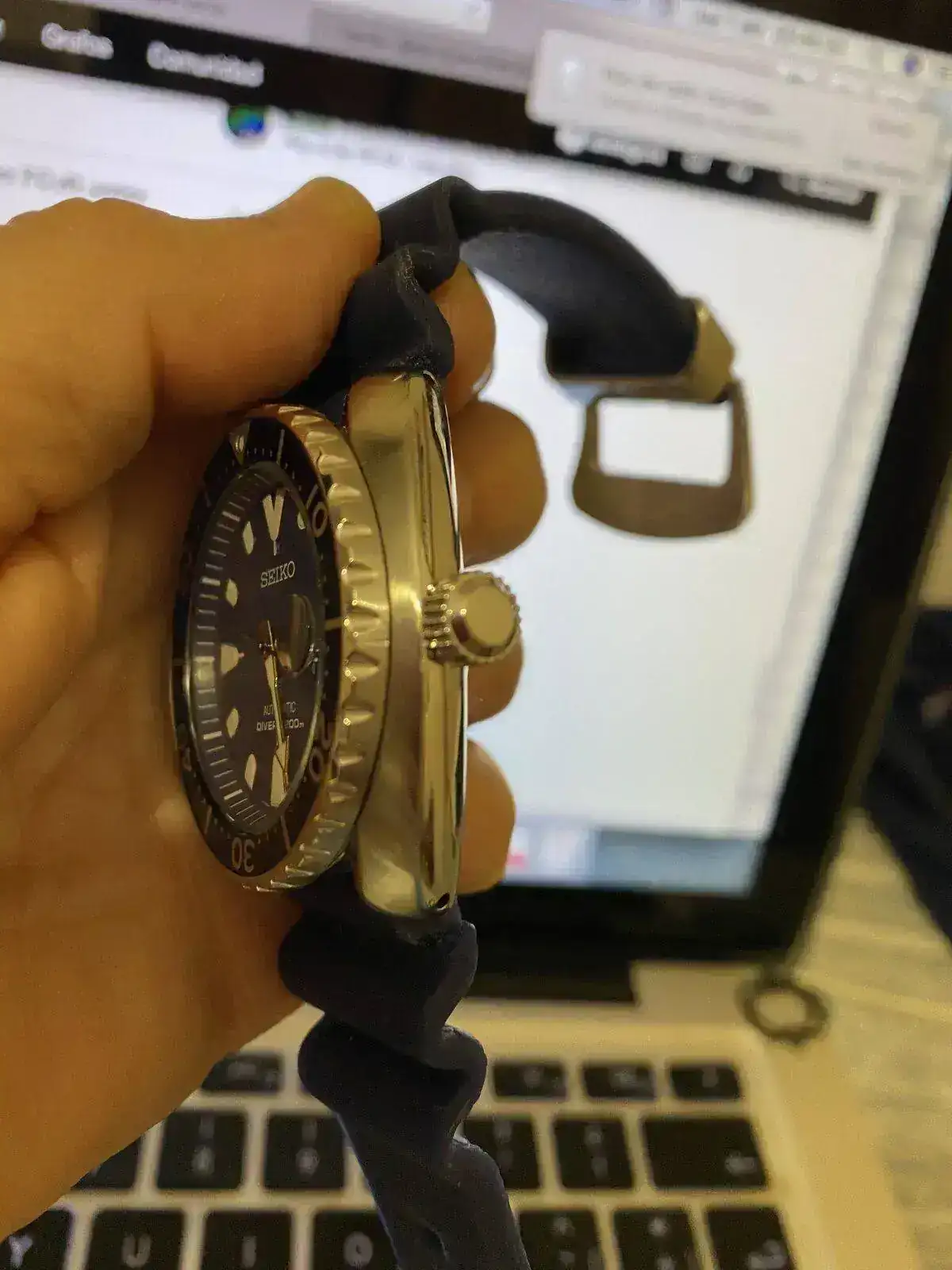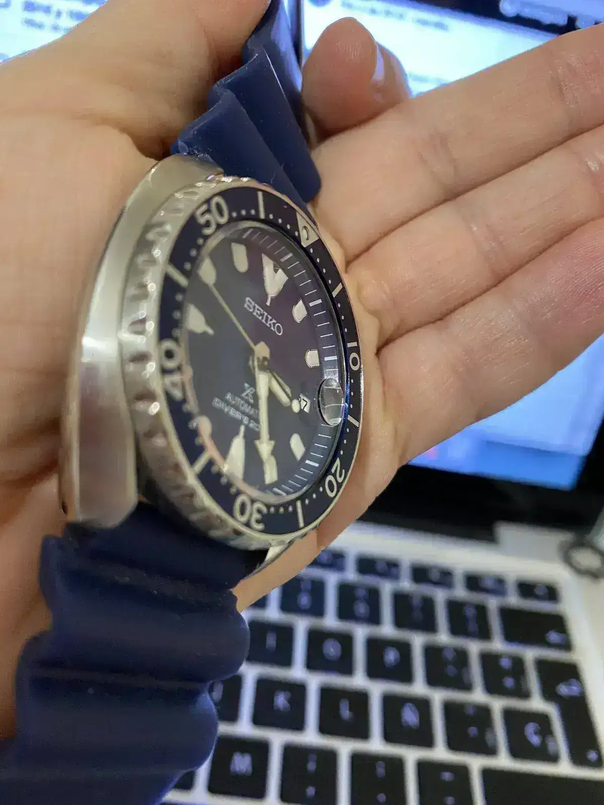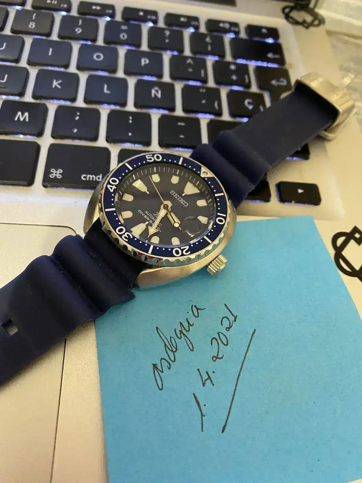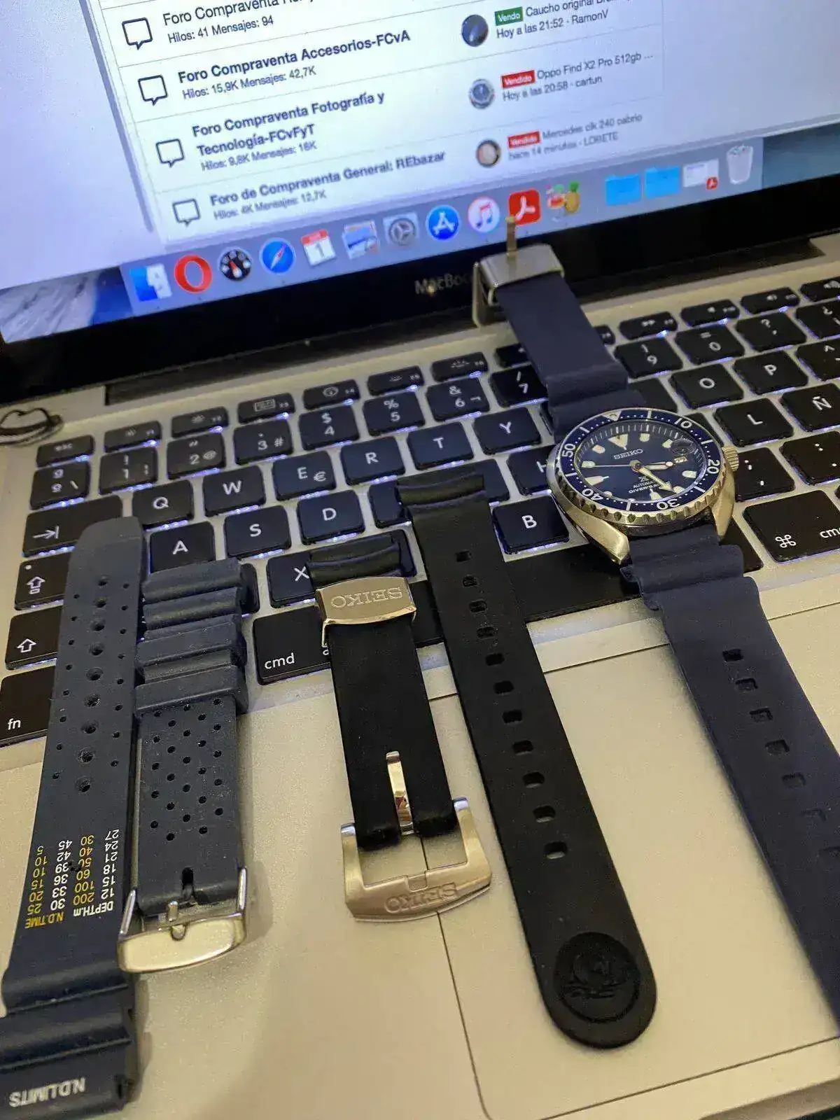 Brazalete: Su caucho negro Seiko y dos mas azules que vinieron con el reloj