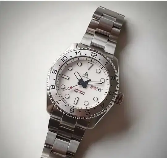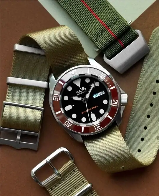 Partiendo de un 7002, comprado en muy mal estado estético, maticé la caja, le cambié el anillo interior por uno blanco (antes de que sacasen los nuevos 5), la minutera en naranja y le puse un plexi con anillo de presión y una milanesa.