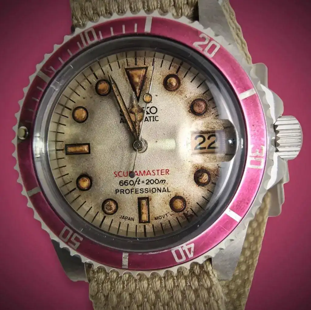 Actualmente estoy entrando en el mundo de los mods de Seiko y he encontrado una persona que los produce en España. Hace homenajes de divers y similares de estilo militar (siempre desde el respeto al mundo relojero, cosa que remarca). Se centra en la estética vintage, aplicándoles ciertos tratamientos a las piezas.