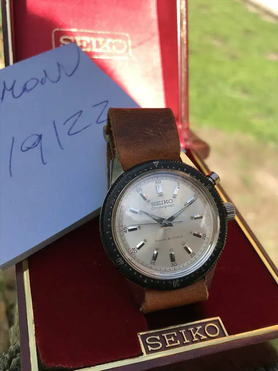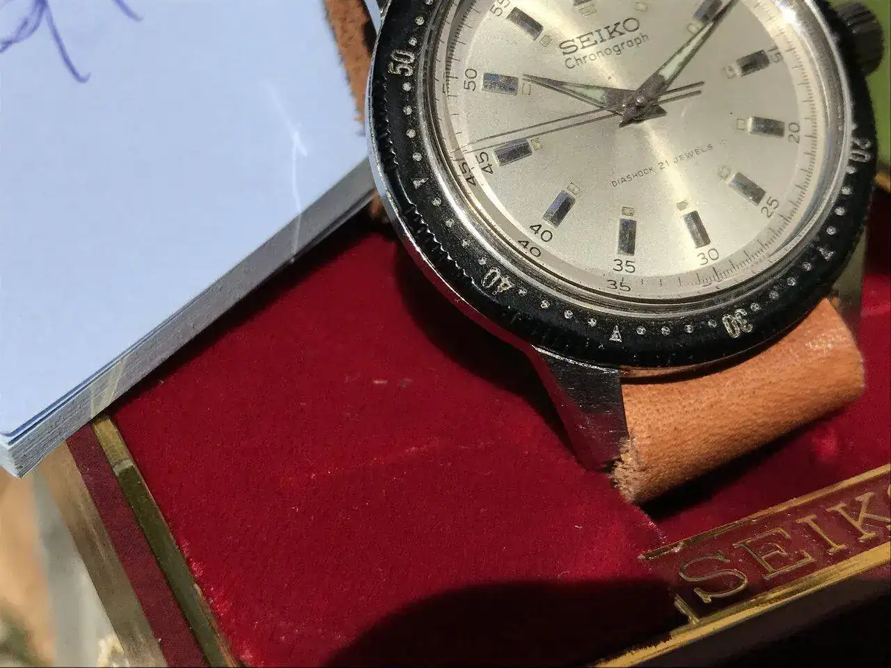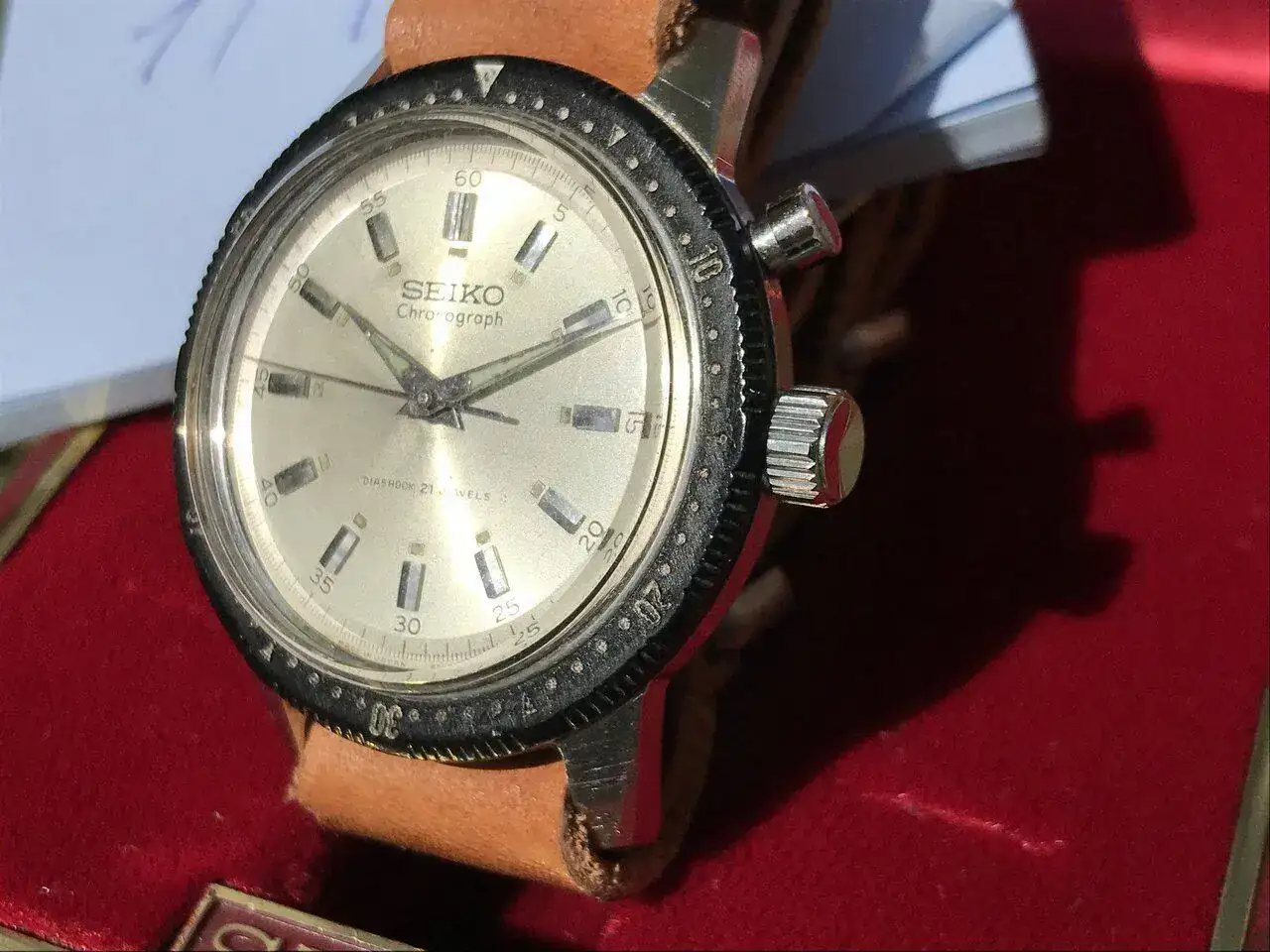 Pieza de Seiko conmemorativa de los juegos Olimpicos de 1964. Dificil encontrat en este estado y con el bisel de los primeros de baquelita y con todavia agarre y giro sin problemas.