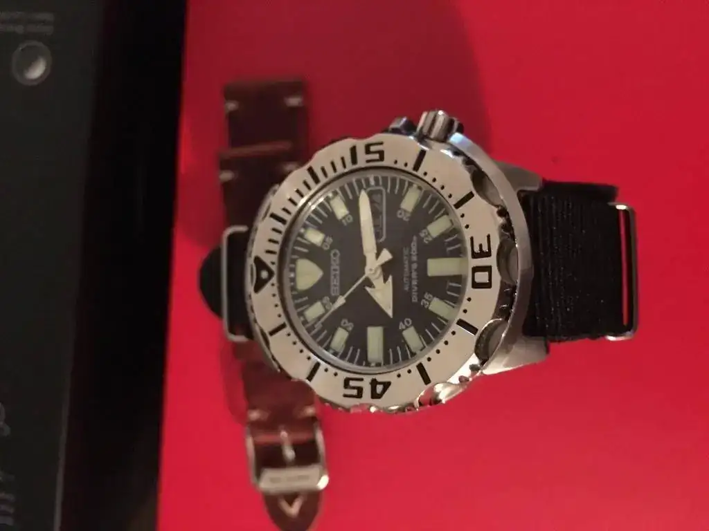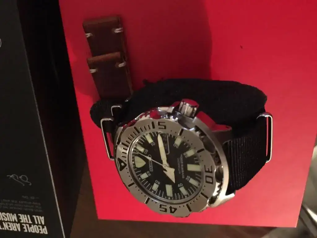 Pongo a la venta esta pieza comprada recientemente en el foro, no me convence la verdad aunque ya he tenido el naranja. Resumidamente: reloj sin ninguna marca reseñable, no le veo ningún pelillo destacable ni nada por el estilo, a las fotos me remito. Lo vendo con 3 correas, dos estado de estreno y la nato negro con 2 usos (contados).