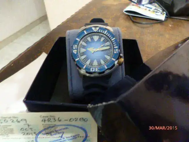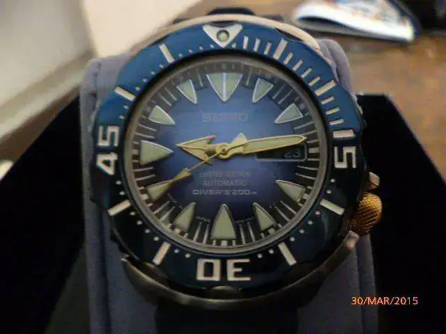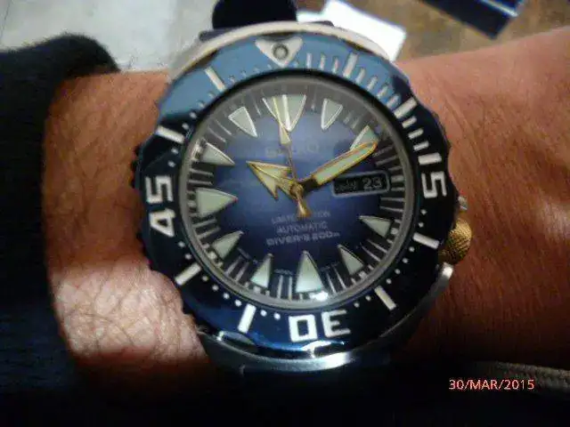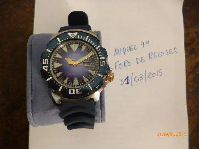 Hola compañeros, como todo no puede ser, y a salido mi grial( seiko panda) pongo a la venta este magnífico seiko monster limited edition, Aquí sus características: Se trata de una edición limitada del seiko monster que lleva un fiable y robusto 4R36 automático, con remonte manual y parada de segundero. Tiene el calendario en árabe e inglés, una preciosa de esfera azul, con cambios de tonalidad, según incida la luz. Su estado es de 9/sobre 10. No tiene ninguna marca en el cristal ni en la caja y su marcha es muy buena, ajustadísimo. Creo que es una buena oportunidad para hacerse con una edición limitada de seiko, made in japan, cada vez más cotizada. Su precio lo dejo en 350E y en principio solo lo cambiaría por un seiko panda 6138 que estuviese en muy buen estado