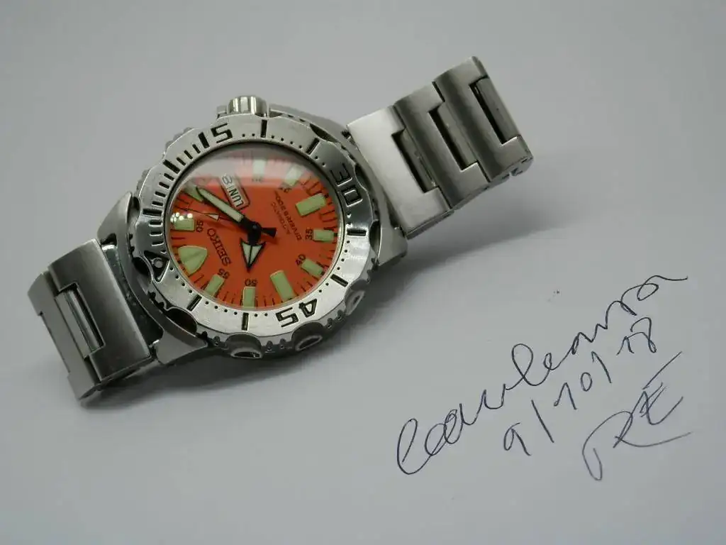 Saco para venta este Seiko. Está en un estado impecable. Con ligerísimas marcas de uso. Calendario semanario, corona roscada...Bueno es una pieza conocidilla por todos. Está puesto para mi muñeca que son unos 17,5 cm y tiene dos eslabones más. Paso a la ficha pertinente: