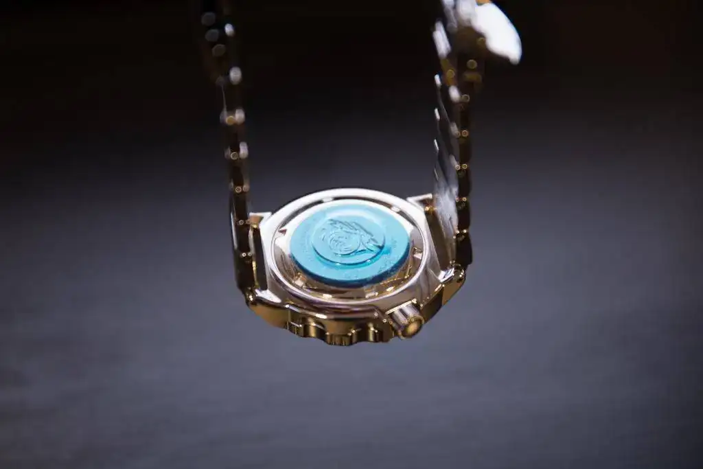El reloj está prácticamente de reestreno. Aún tiene puesto el plástico de azul de la trasera, y tiene algún pelillo que hay que buscar con lupa.
