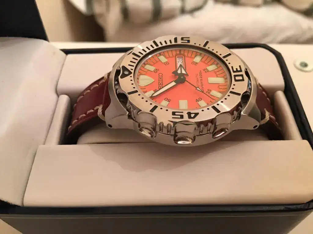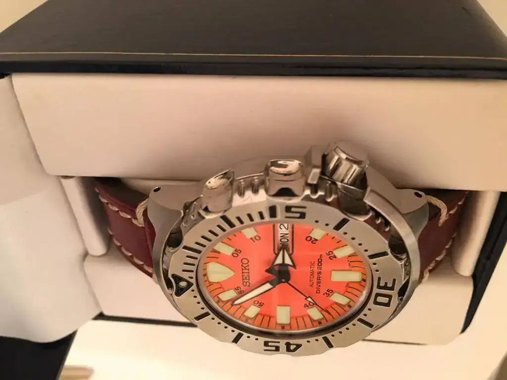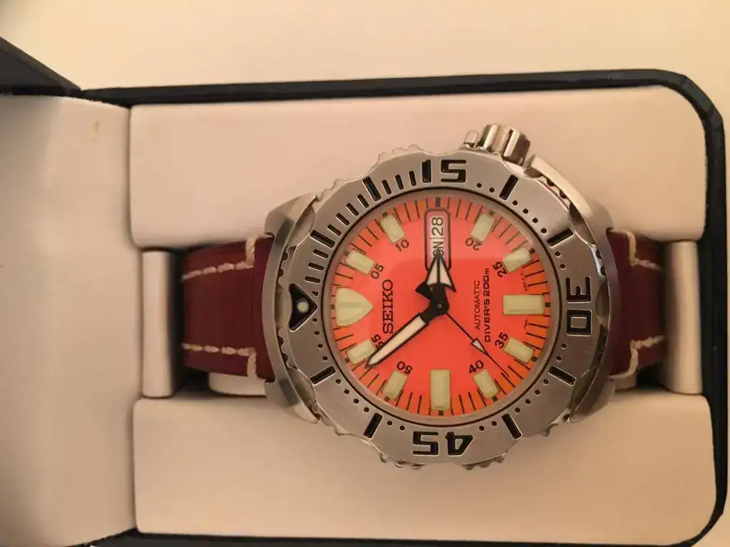 Me dispongo a poner a la venta mi Seiko Monster (dial naranja). Desde el día que me lo compre puedo contar con las manos las veces que me lo he puesto. Por falta de "feeling" y por tener mejores compañeros no he acabado de encontrarle sitio en mi colección.