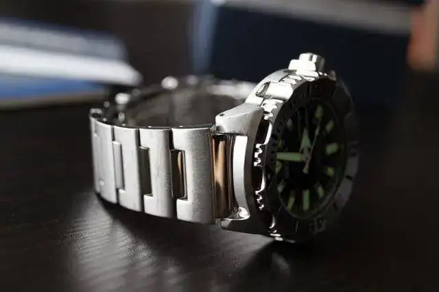 El estado general del reloj es bueno, aunque tiene evidentes signos de uso, especialmente en el armis, en el lado que apoya contra el escritorio cuando se escribe en el ordenador. Reseñar, eso si, una línea en el bisel que va desde la 1 hasta las 3, y que he intentado que se vea en las fotos.
