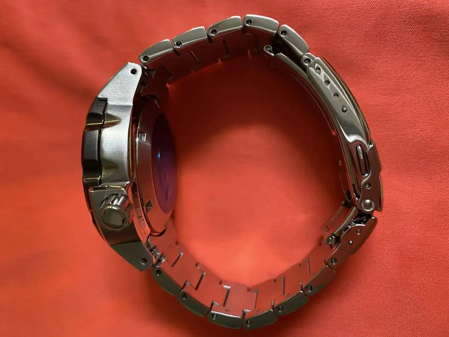 Acero inoxidable, cristal Hardlex. Pieza de sobra conocida por todos, Se encuentra en muy buen estado, sin golpes o arañazos dignos de mención.