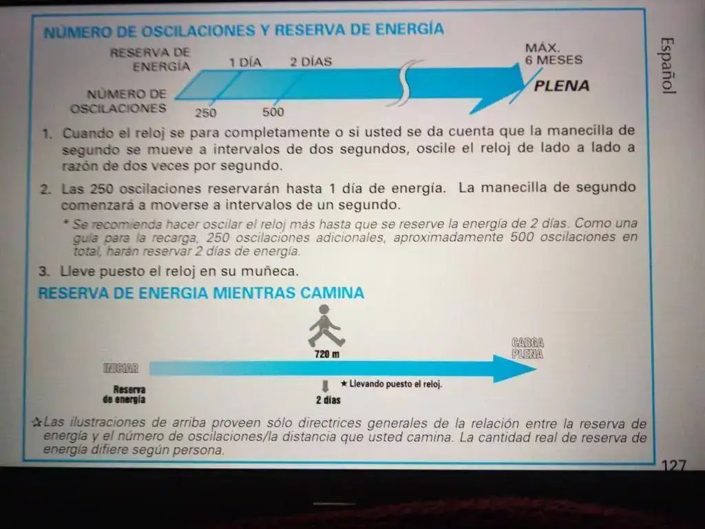 No depende del tiempo, depende del movimiento de la mano, me explico puedes llevar el reloj un mes y si eres un poco paradito y no mueves el brazo te carga muy poco, y puedes llevar el reloj sólo una semana y cargar más rápido si eres persona de mover muchísimo el brazo, gesticulando por ejemplo, llendote a andar y mecer el brazo, en fin y eso que dice el compañero que vaaaaa!! ya te mando las especificaciones del reloj.