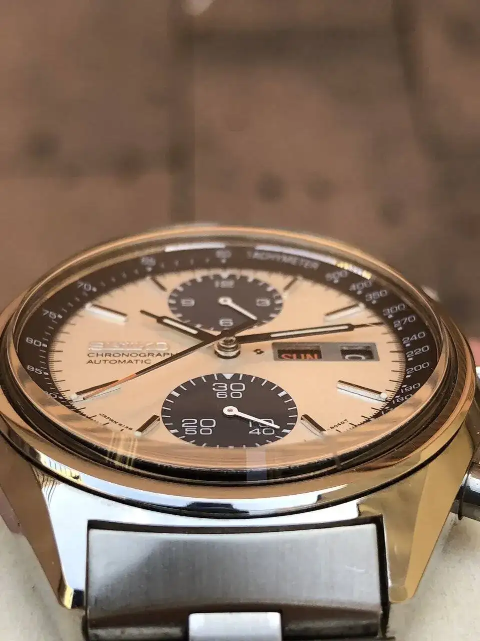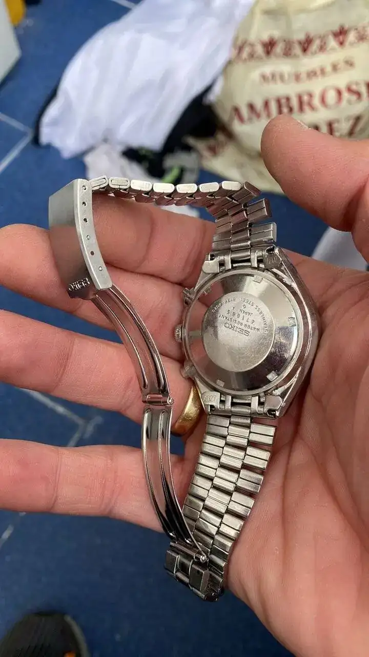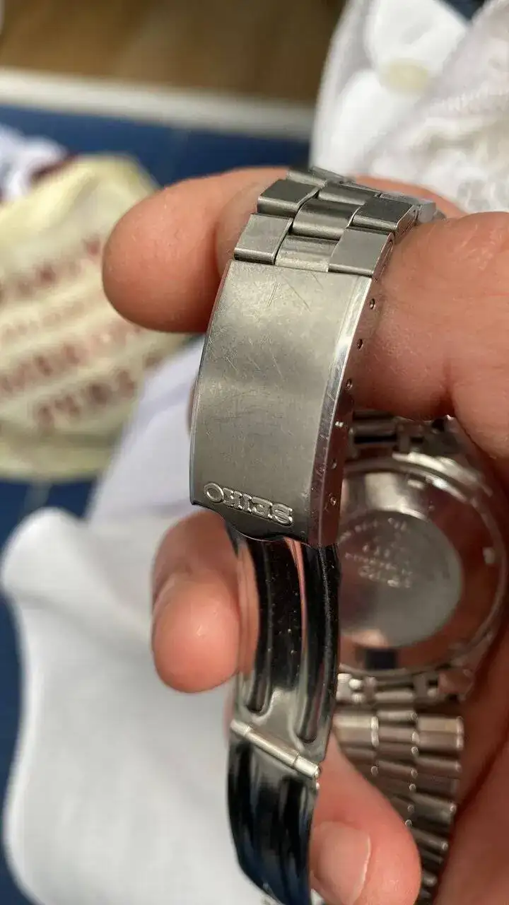 Dial, agujas, brazalete y cristal, no son originales. Este es posiblemente uno de los seiko mejor “falsificados” que hay. Hay algunos diales after bastante difíciles de detectar, pero no es éste el caso. Aquí se ve en muchos detalles.