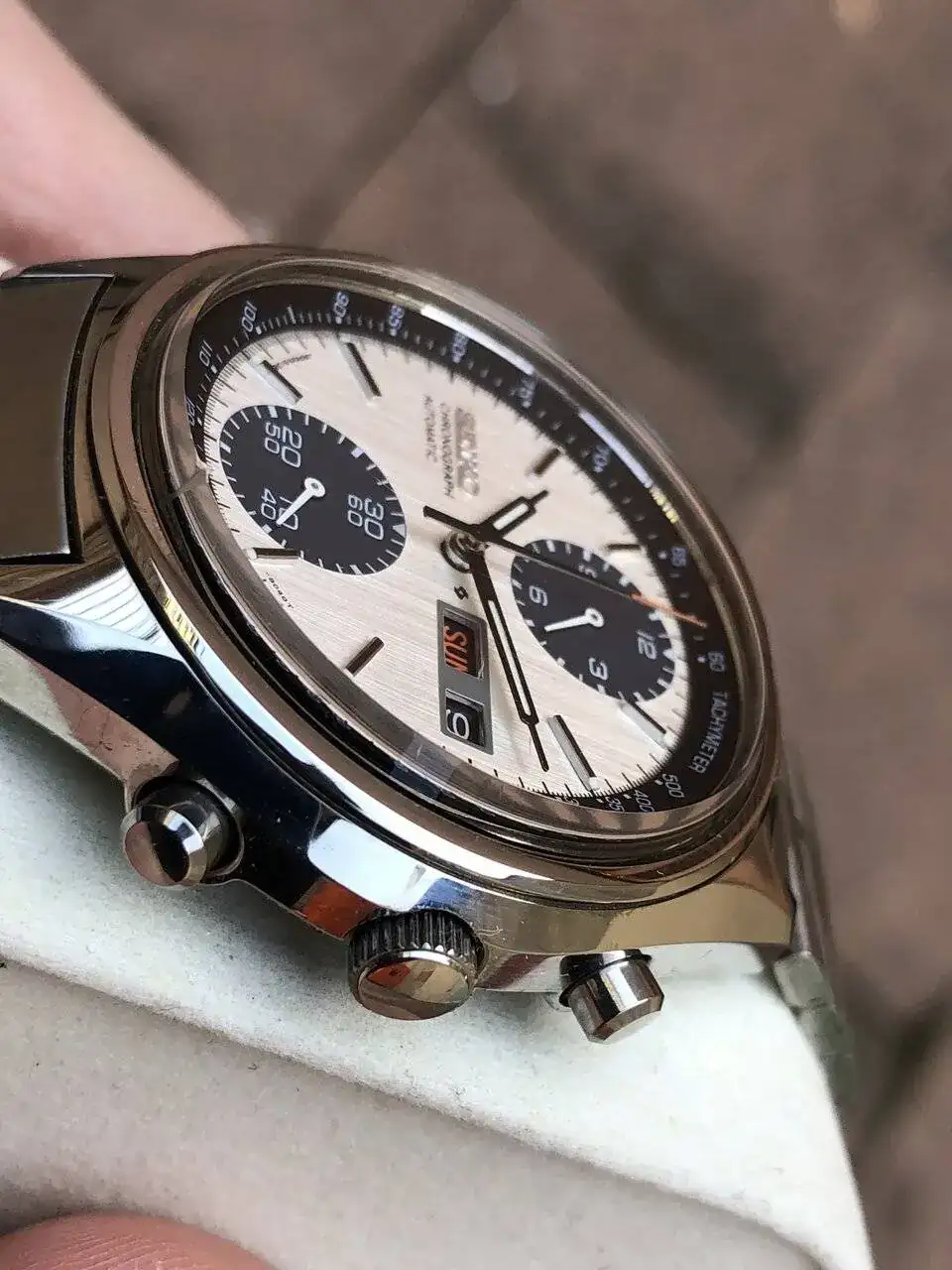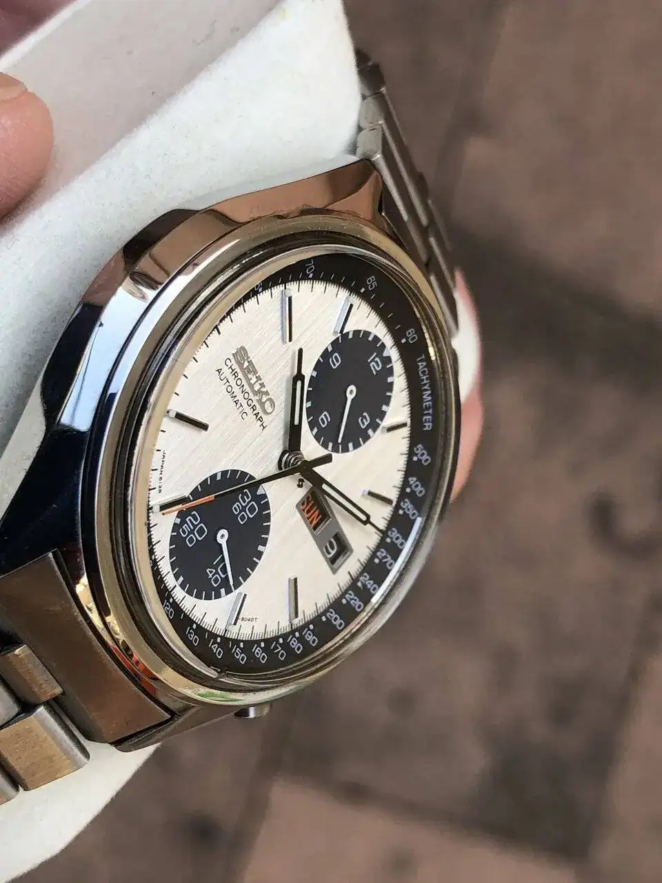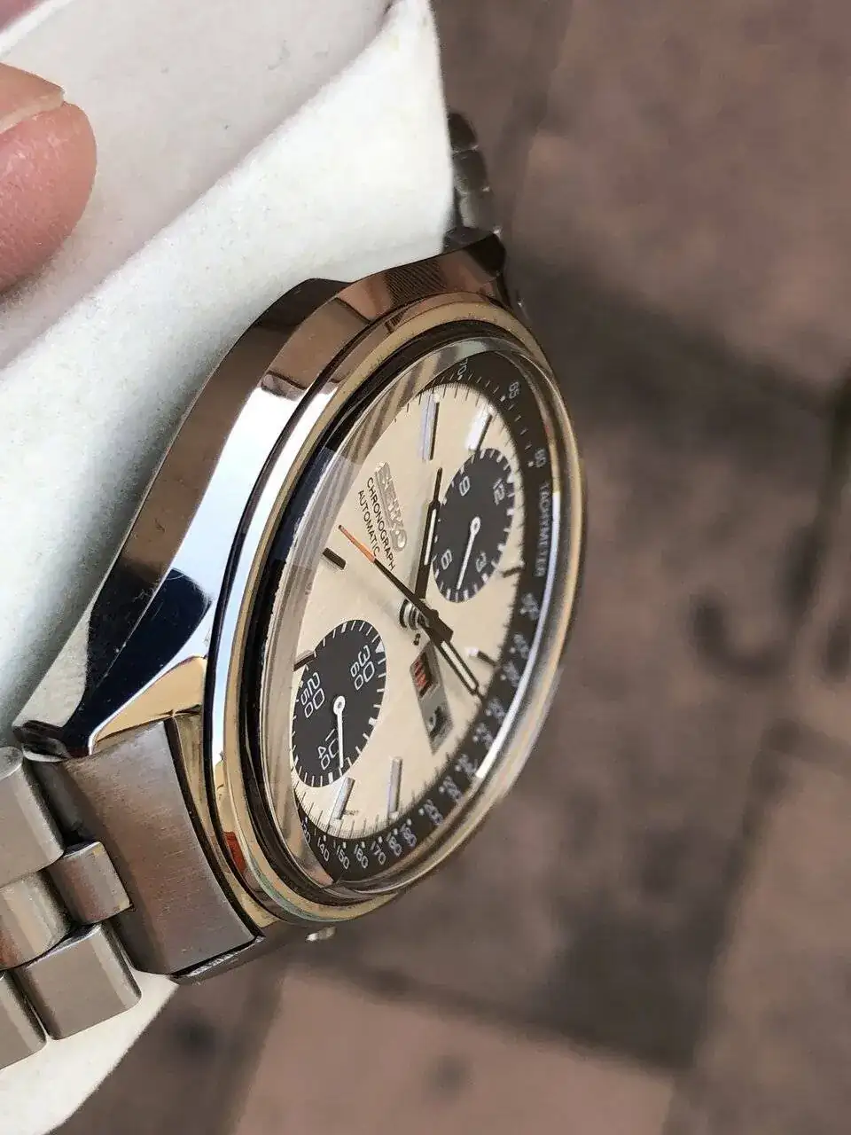 Dial, agujas, brazalete y cristal, no son originales. Este es posiblemente uno de los seiko mejor “falsificados” que hay. Hay algunos diales after bastante difíciles de detectar, pero no es éste el caso. Aquí se ve en muchos detalles.