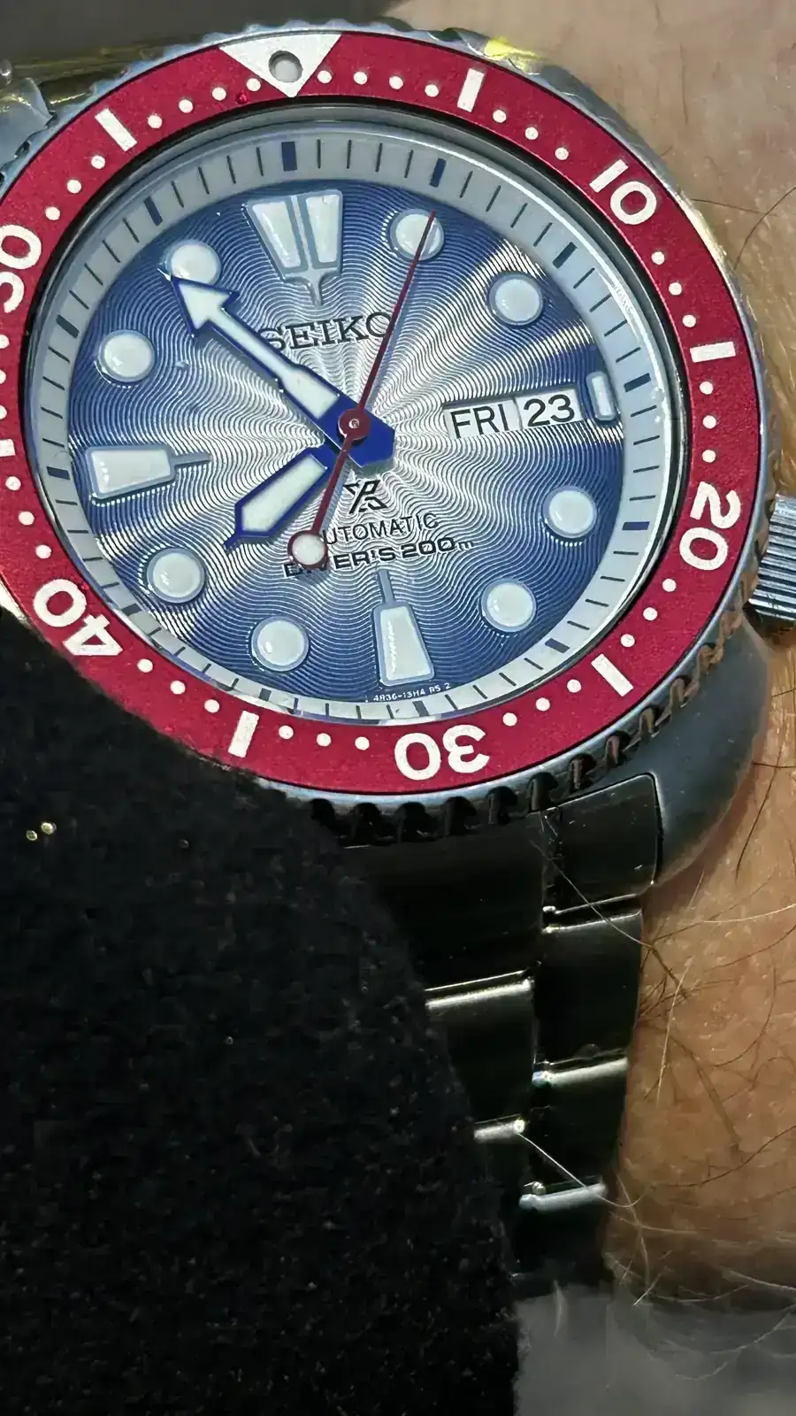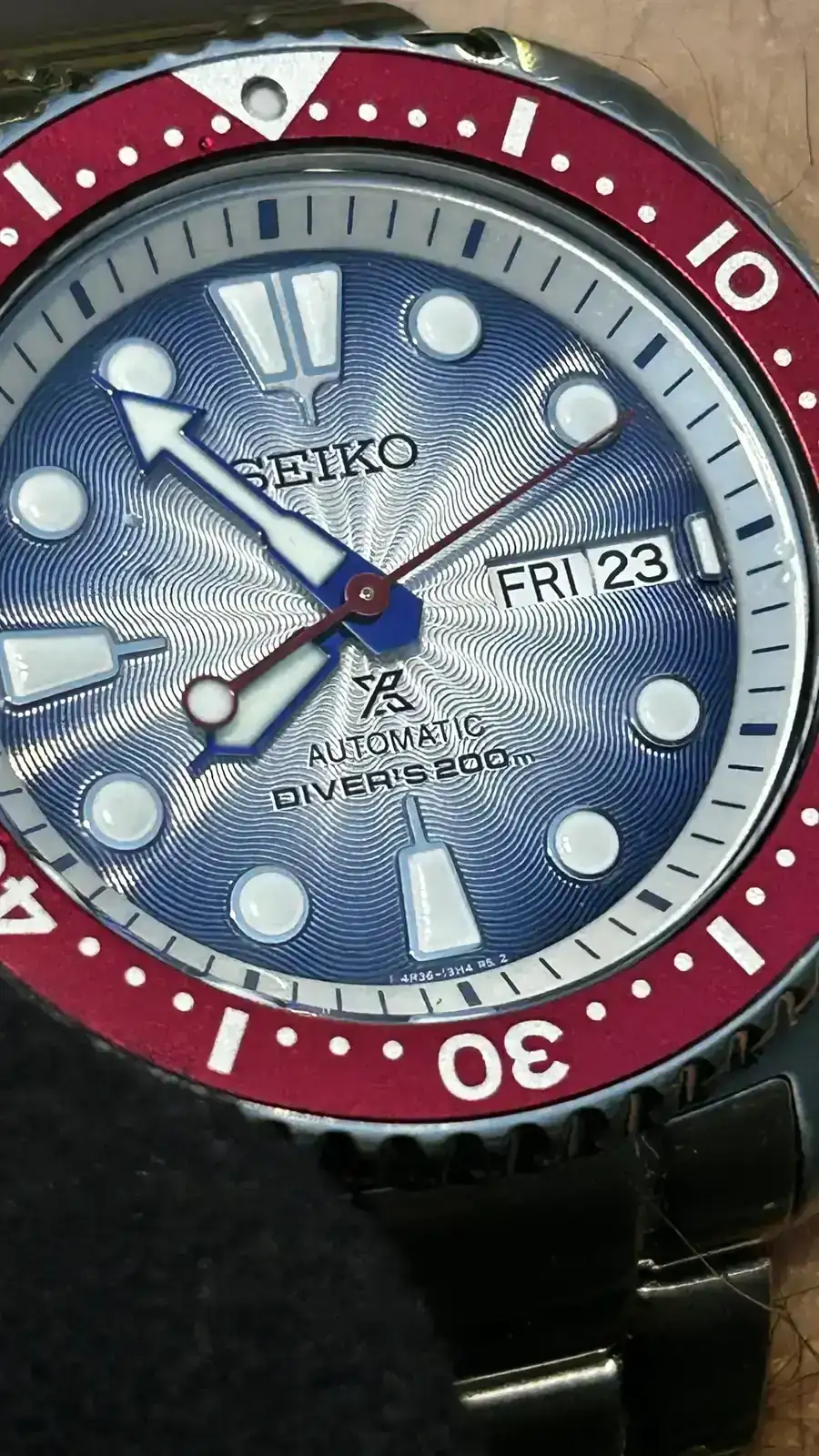 Vale la pena presentarles en un post el recien llegado, un pez luchador siamés (Siamese fighting fish) de Seiko. Edicion limitada de 1500 solo para Tailandia. Un Prospex tortuga, 45mm, el calibre usual del tortuga (4R36), inspirado en el pez nacional, el famoso malgeniado y luchador “Beta” de los acuarios, el reloj muestra el rojo, blanco y azul de la bandera de Tailandia. Les dejo unas fotos del telefono y les deseo un buen fin de semana.