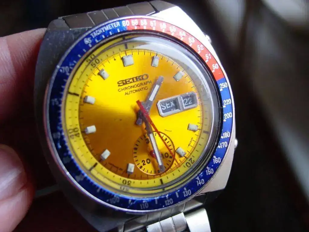 El de exportación debajo del logo de Seiko lleva el texto "Chronograph Automatic", y encima del 30 de la subesfera lleva el símbolo de Suwa.