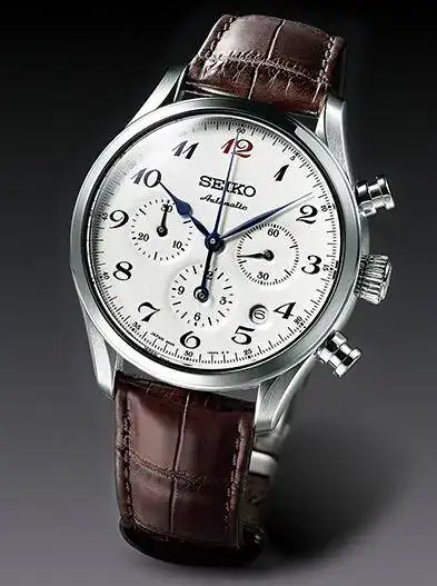 Movement is the Japanese automatic Seiko in-house caliber 8R48 with 34 jewels, 28,800 vph and a power reserve of 45 hours. It features a column wheel and vertical clutch systems.