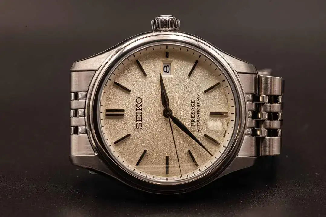 Pues después de meses esperando, ya lo tengo en mi mano, primeras impresiones, un reloj muy elegante y bonito, 40mm, calibre 6R55 que me está dando +4 segundos al día, nada mal de funcionamiento, Corona firmada, algo no muy común en la marca, trasera vista con una masa oscilante en color dorado, del movimiento lo que más me llama la atención es su volante, lo veo muy pequeño, trae un armis muy bonito, cosa rara en Seiko donde los armis son muy mejorables en general, fechador discreto a las 3, unas agujas muy elegantes, por último su dial es espectacular, según Seiko simula el tejido de seda según se fabricaba con un arte milenario, creo que es lo mejor del reloj, le sobra a mi gusto la inscripción de 3 días a las 6, Su precio de tarifa es de 1200€, creo que algo excesivo, a mí me hicieron un 25%, en 900€ ya lo veo con otros ojos, el reloj sin duda es bonito y elegante, os dejo unas fotos, gracias a todos.