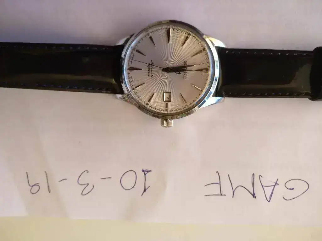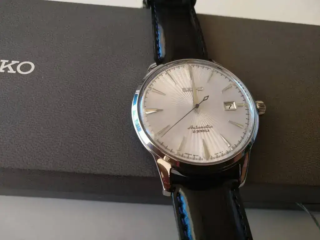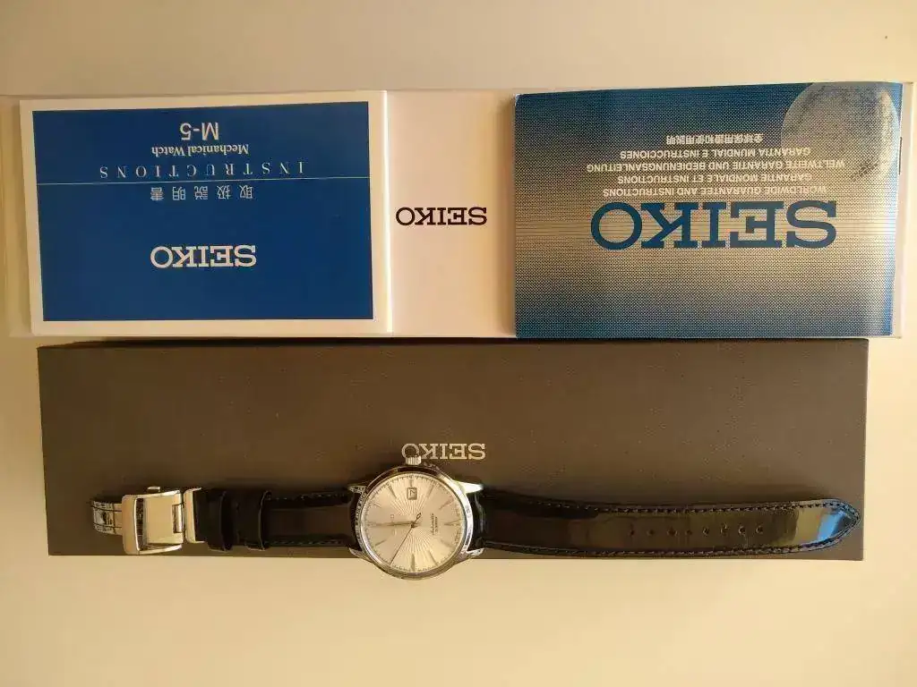 Como parte de pago de un reloj propongo para venta este Presage en un estado excepcional. Su anterior dueño lo utilizo en escasas cinco ocasiones y yo en dos por lo que prácticamente está a estrenar, modelo ya descatalogado que lleva el movimiento 6r15, de gama superior a los que montan los actuales. Dial con una belleza hipnótica y en el que la grafía es diferente a la actual, que en mi opinión es más atractiva. Es del año 2017. La caja mide 40 mm. Cristal domed hardlex , correa de dotación de piel con deplo aún con plástico. Manual y cajas originales. Garantía firmada pero no vigente ya que al ser japonés es de un año. El envío por correo certificado está incluido. No puedo aceptar cambios ni relojes como parte de pago, estoy en proceso de reducción de caja y lo hago con férrea disciplina. Cualquier duda estaré encantado de resolverla por privado.