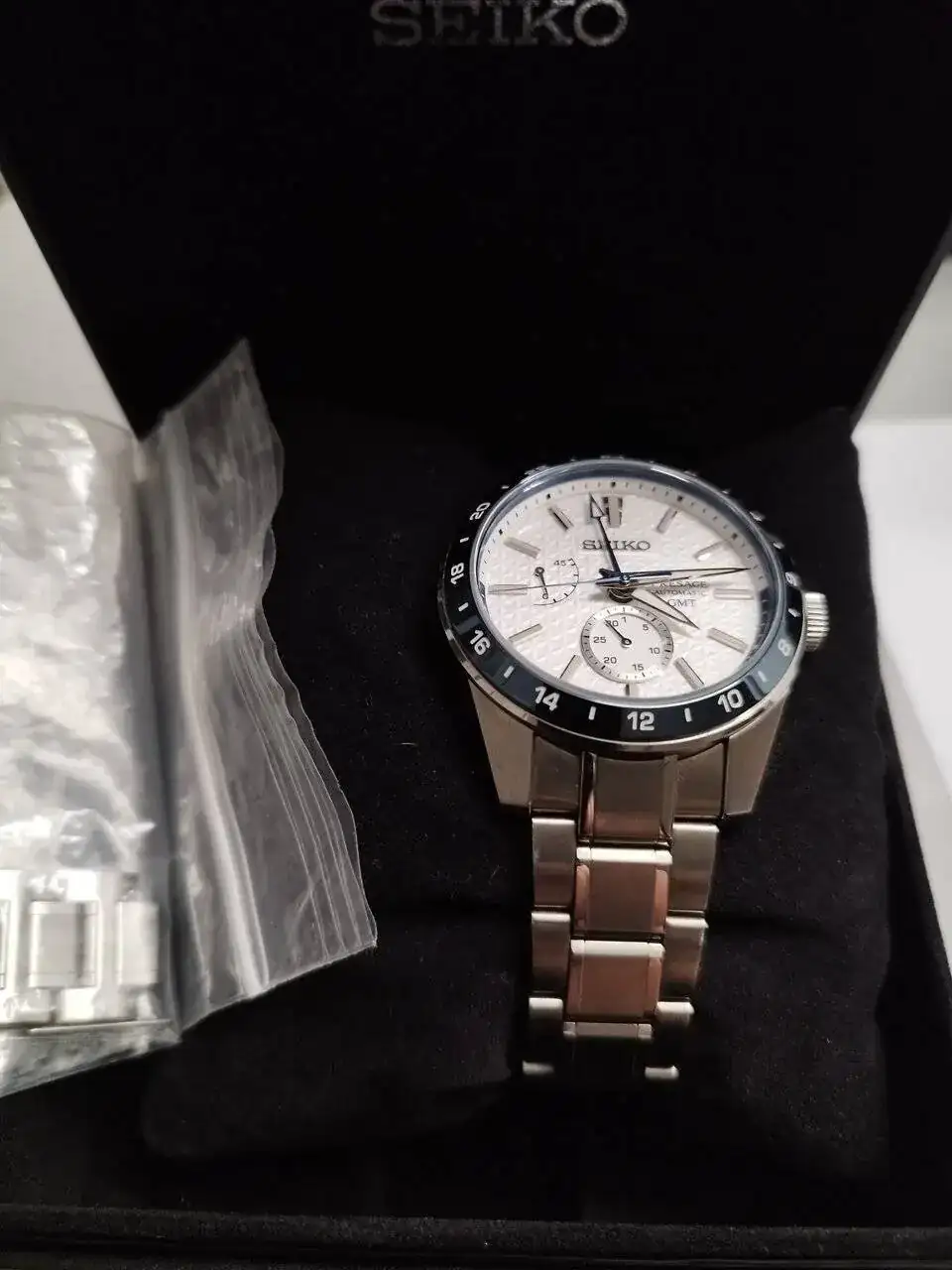 Esta completo de caja y documentación,eslabones sobrantes y pañuelo Seiko .