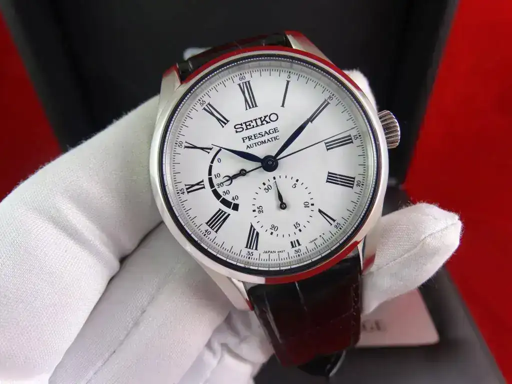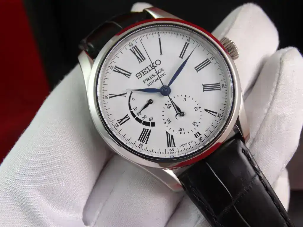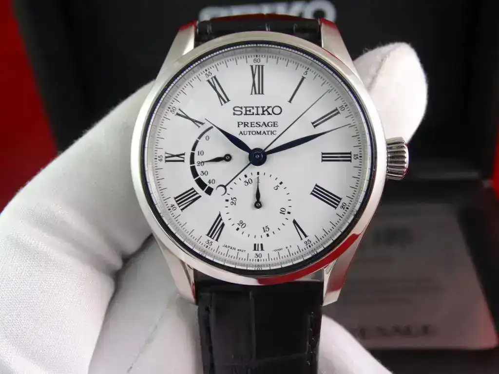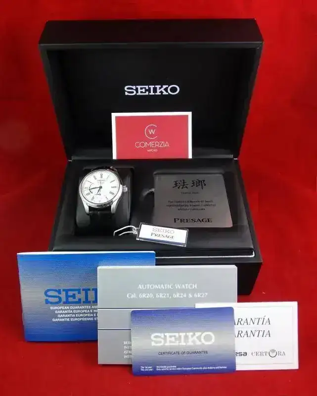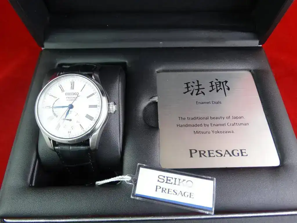 Seiko sabe hacer las cosas muy bien y desarrollar relojes de muy alto nivel al alcance de muchos bolsillos; la línea Presage ha sabido plasmas esa calidad en una pieza muy especial, destacando sobretodo la increíble esfera realizada a mano de Enamel, destacando dicho trabajo en una placa en la caja.