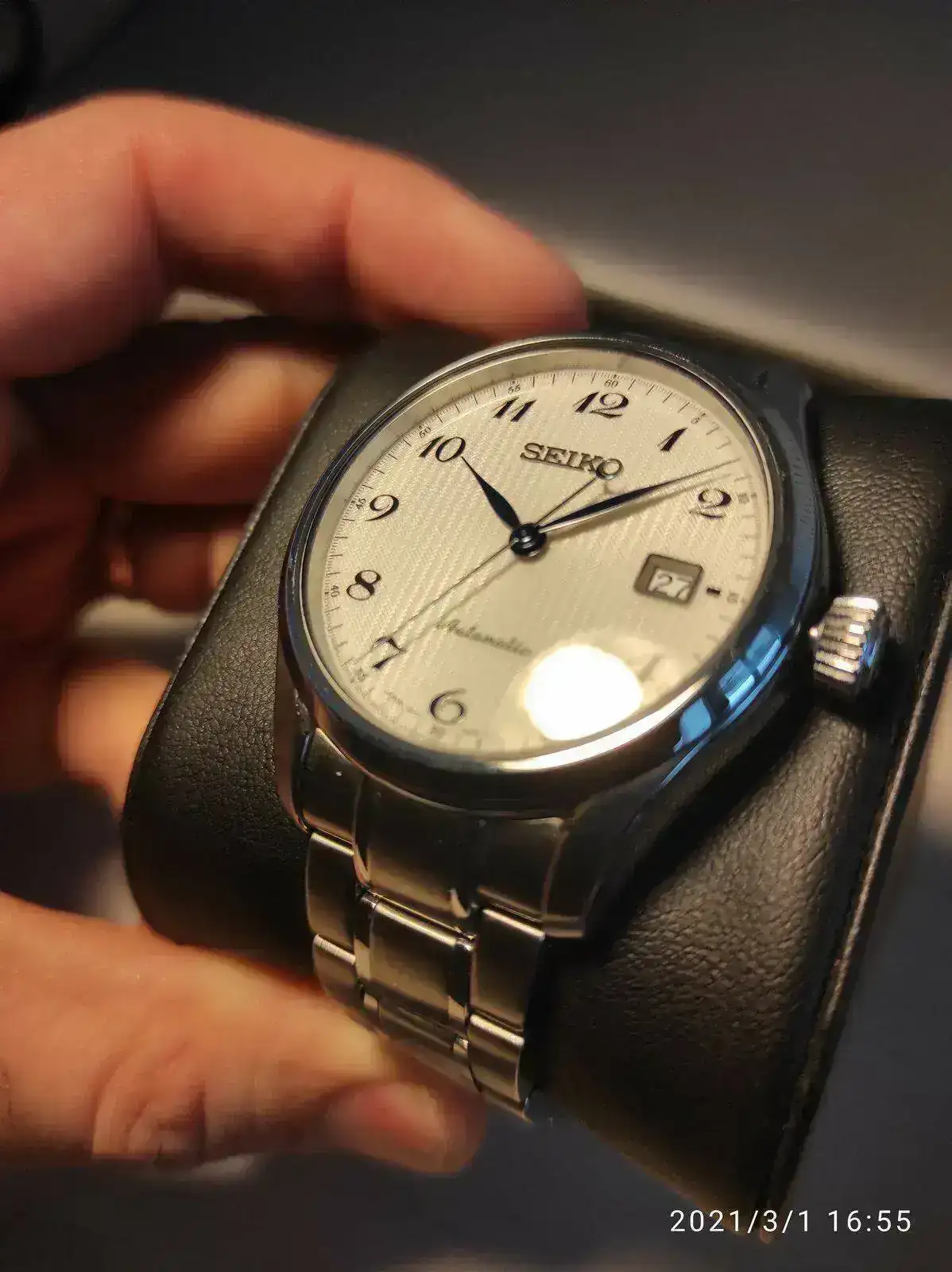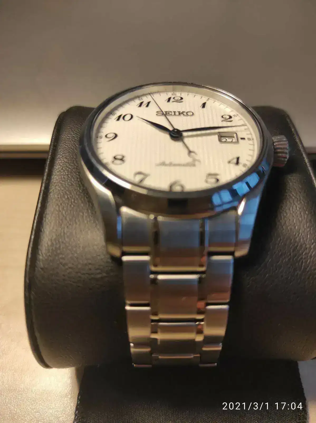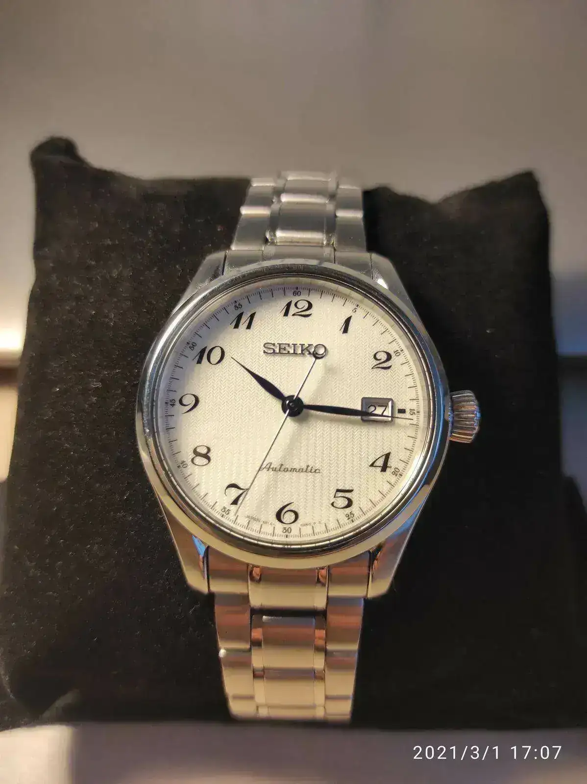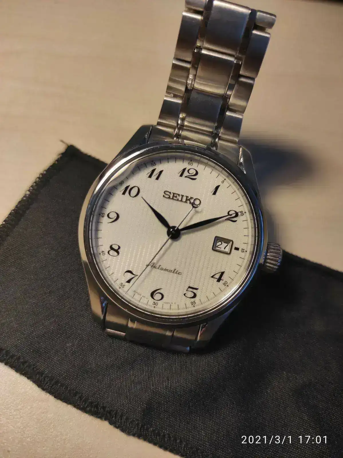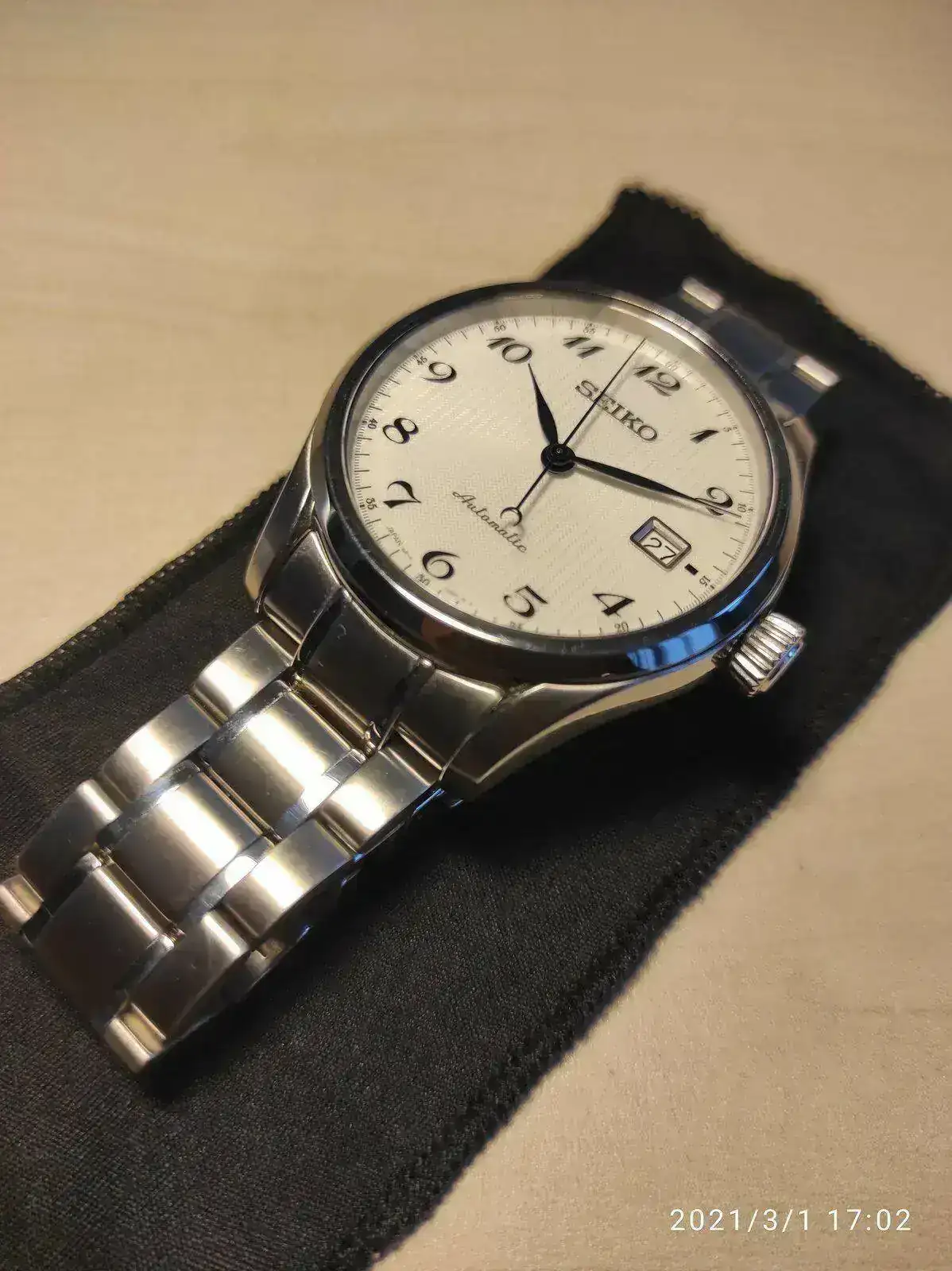 Saco a la venta este elegante Seiko poco visto. Se trata del Seiko SPB035j1 con unos acabados y calidad por encima de lo habitual como se puede apreciaren en su fantástico brazalete. Cuenta con un mecanismo 6R15 con 50 horas de reserva, cristal de zafiro y resistencia 100 metros. Su tamaño de 40,5mm lo hace ideal como reloj de vestir con cierto toque deportivo para cualquier tamaño de muñeca. Mención especial para su hipnótico dial texturizado y agujas en azul tornasolado, que aunque he intentado captar en las fotografías, sigue siendo mucho más bonito en vivo.