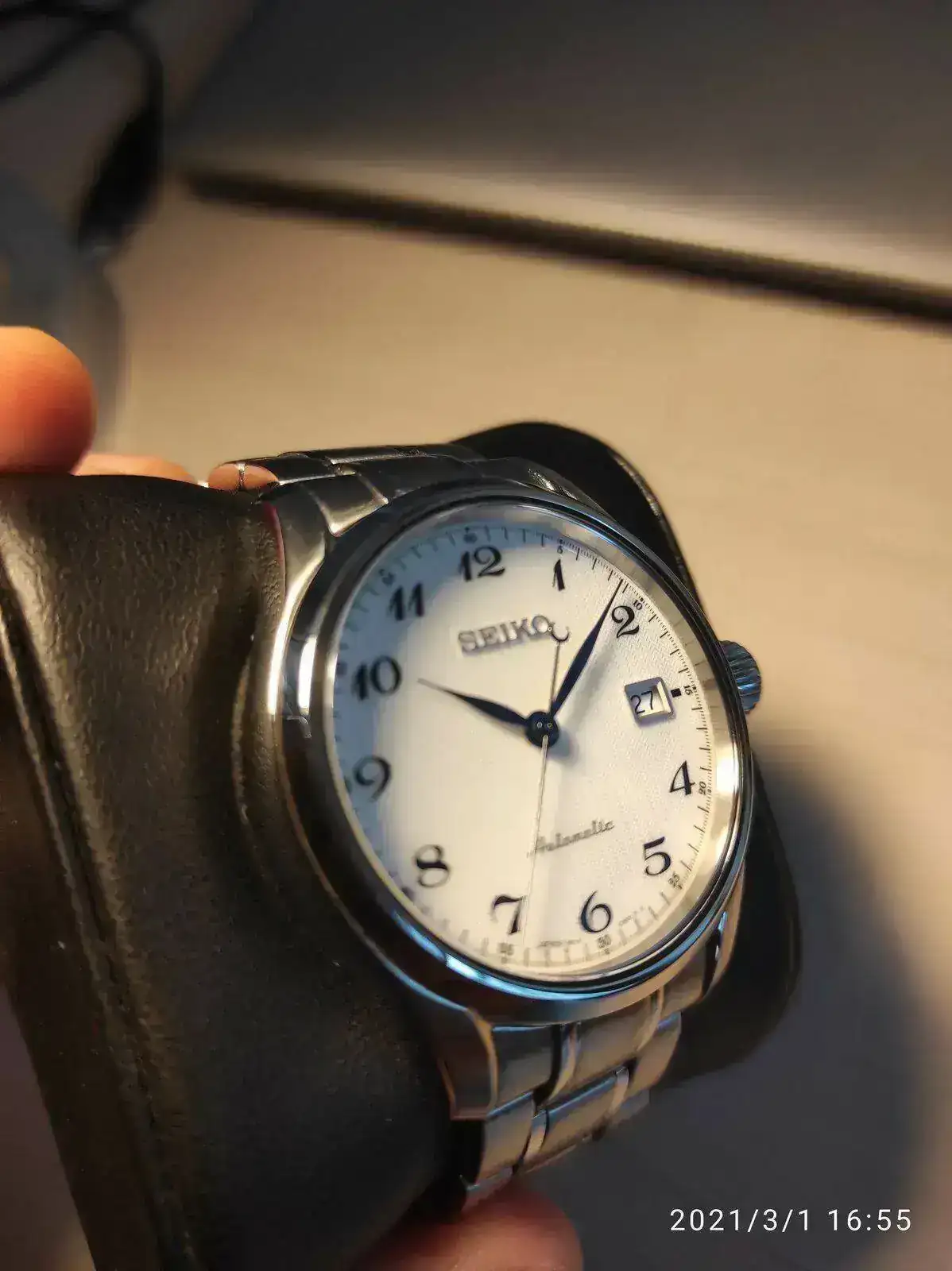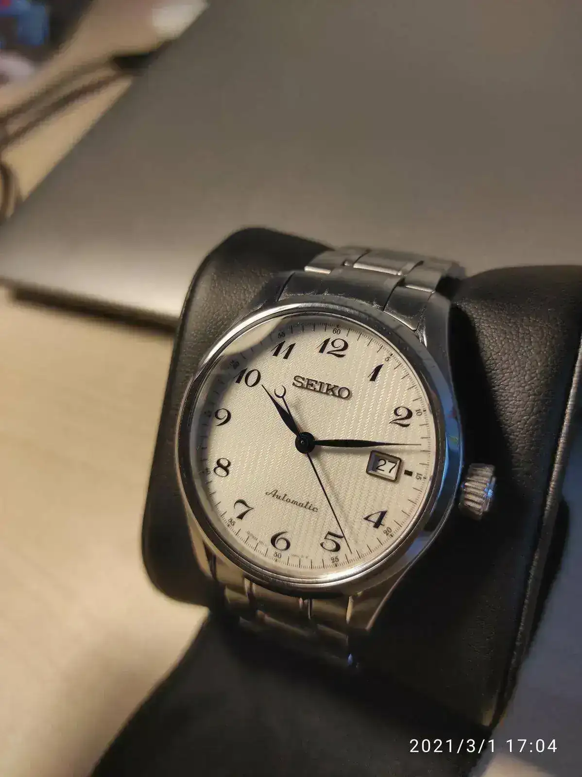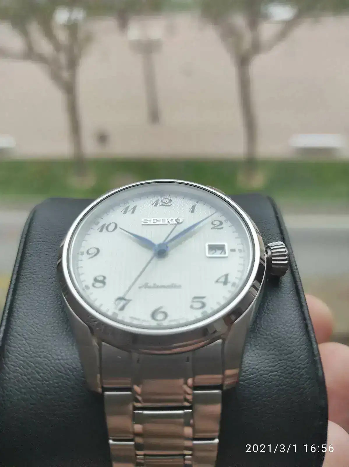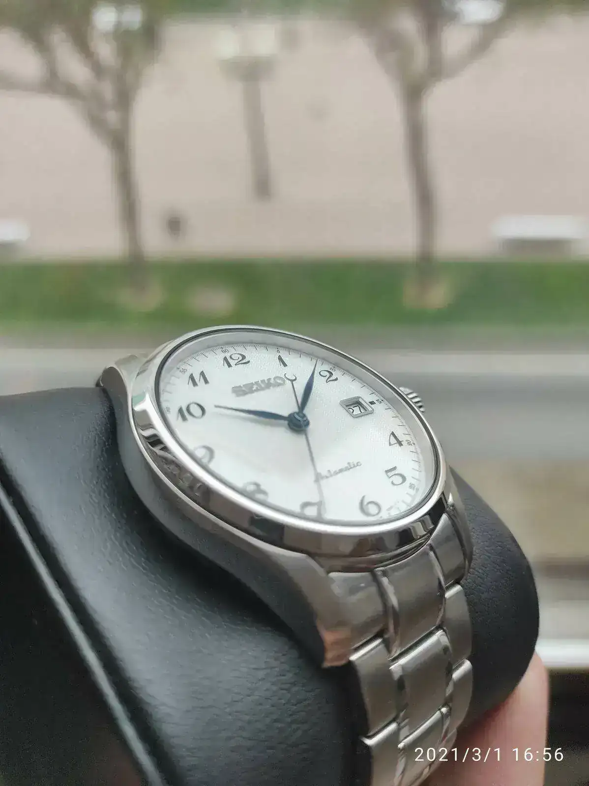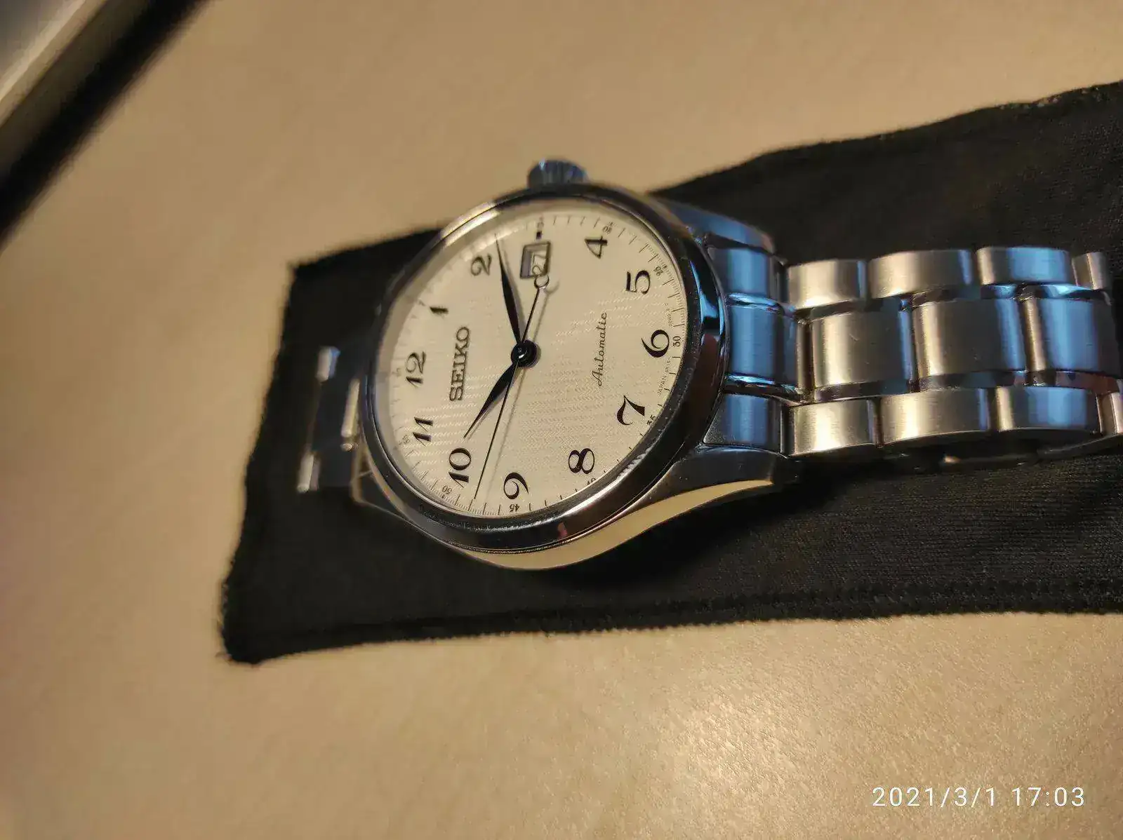 Saco a la venta este elegante Seiko poco visto. Se trata del Seiko SPB035j1 con unos acabados y calidad por encima de lo habitual como se puede apreciaren en su fantástico brazalete. Cuenta con un mecanismo 6R15 con 50 horas de reserva, cristal de zafiro y resistencia 100 metros. Su tamaño de 40,5mm lo hace ideal como reloj de vestir con cierto toque deportivo para cualquier tamaño de muñeca. Mención especial para su hipnótico dial texturizado y agujas en azul tornasolado, que aunque he intentado captar en las fotografías, sigue siendo mucho más bonito en vivo.