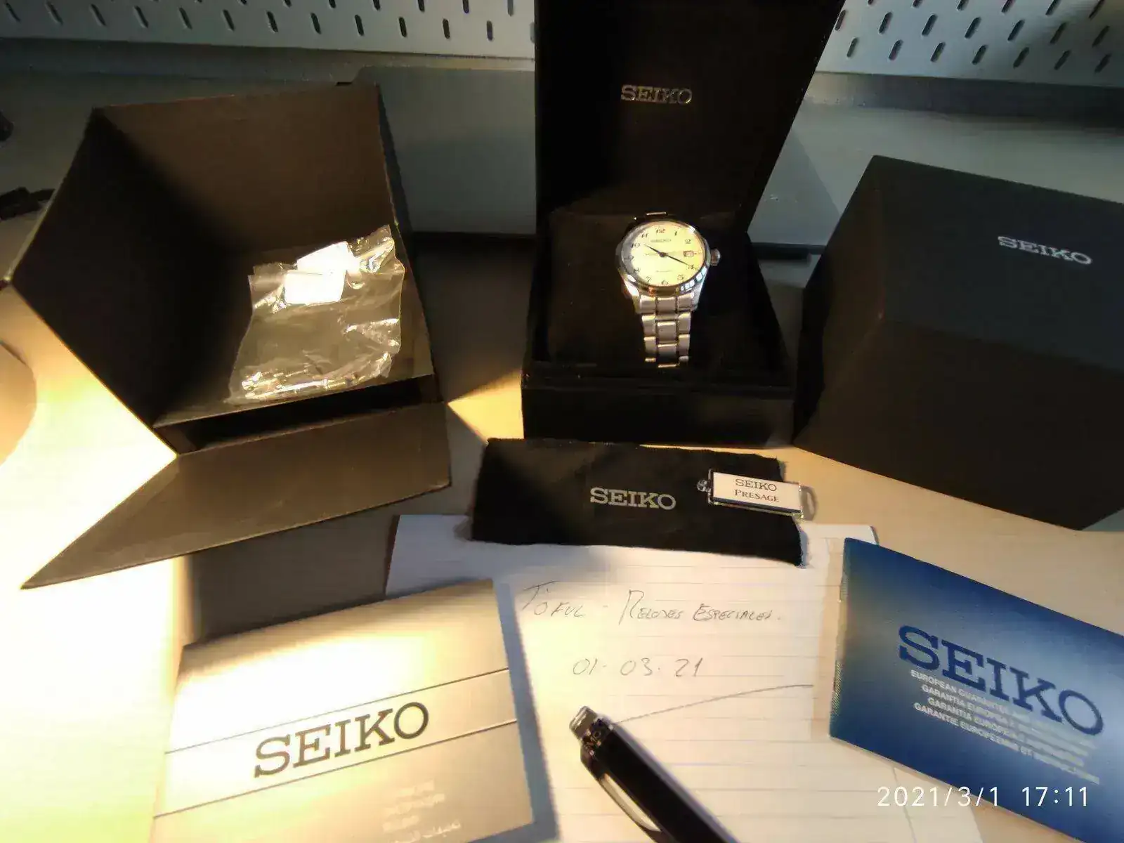 El reloj es de 2019 pero ha tenido poquísimo uso, ya que al no ser del estilo que suelo llevar, ha salido de la caja solo en contadas ocasiones, lo que hace que se encuentre en muy buen estado como se puede apreciar en las fotografías.