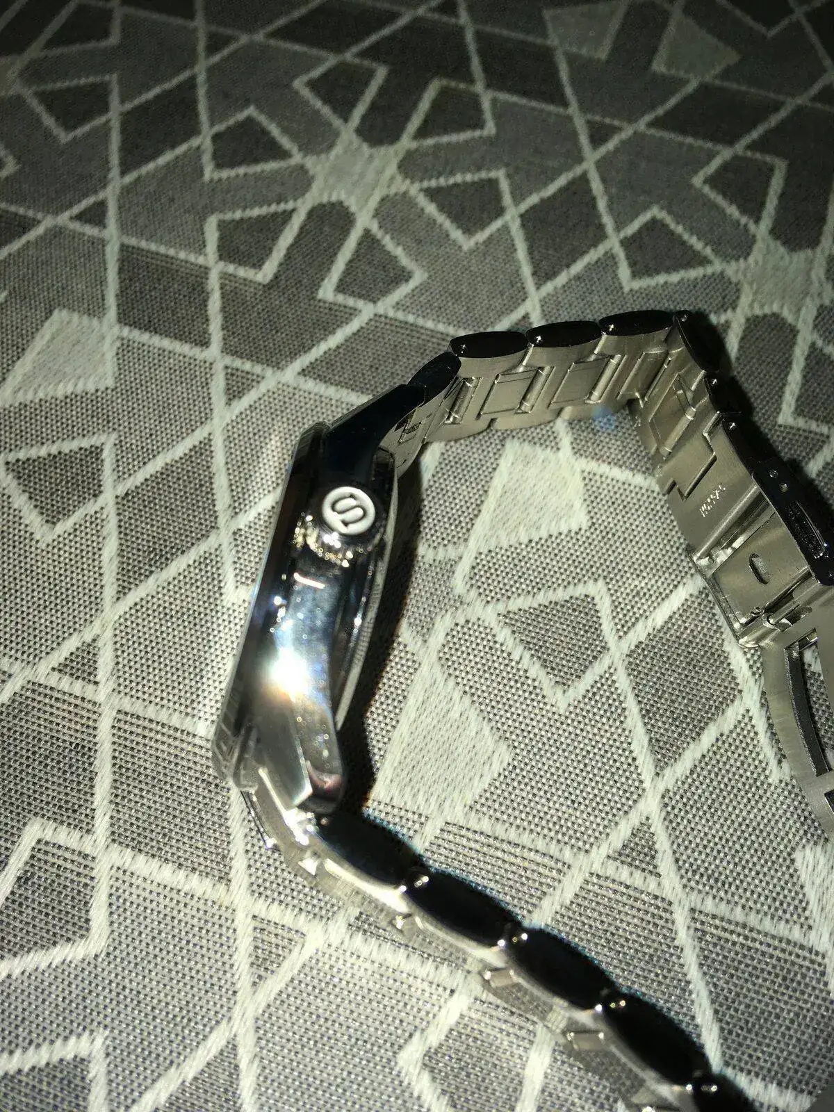 Espero que os guste! A mi la verdad que me ha encantando pero... tenía las expectativas demasiado altas... y sinceramente (y espero no ser apedreado por ello) me parece que no cuesta los 995€ de su PVP. Me ha decepcionado un poco su maquinaria, que al cronocomparador da cifras (dependiendo posición) de unos +4 +6... +12 segundos/día... no están del todo mal pero... por ejemplo un Steinhart de reciente adquisición con el ETA 2824-2 da unos números bastante mejores (el PVP del reloj es un tanto inferior a este), habiendo posiciones que clava los 0sec/día, y no superando los +5sec/día, además de las 28800bpm... pero bueno, el conjunto como digo me ha encantado, cumpliendo al 100% lo que buscaba, sobre todo me parece que es perfectamente ponible con camiseta jaja, y el efecto de la esfera es sencillamente espectacular, el juego de colores... todo. El brazalete tiene bastante calidad también. En fin, que sí, que hay que valorar el conjunto pero... lo dicho, tenía las expectativas demasiado altas.