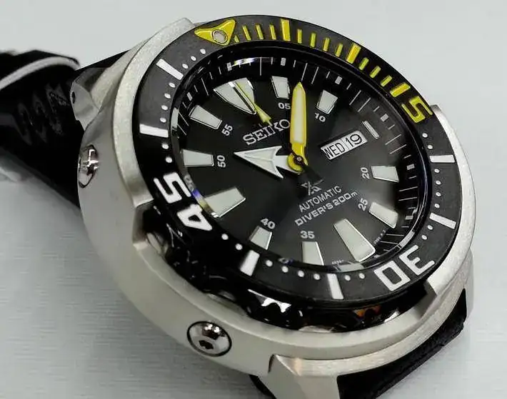 Sus características aunque conocidas son: Calibre manufactura Seiko automático con posibilidad de remonte manual, cristal hardless, bisel unidireccional, sumergible 200 metros, correa de caucho etc