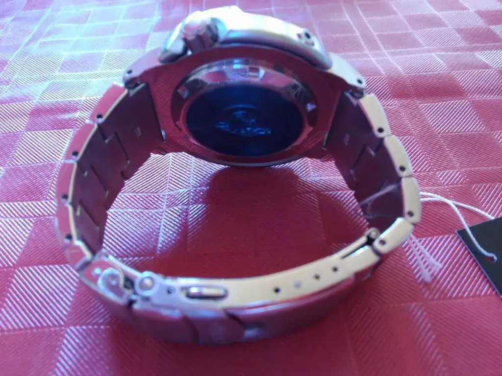 Aún con garantía, fechada por un excelente mercante del Foro. Acompaño papeles, garantía sellada, su caja, eslabones sobrantes, etc. Movimiento automático. Esfera color negro, con agujas y marcadores horarios luminiscentes. Cristal Hardlex. Ventana de fecha situada a las 3 horas, indica día de mes y semana en castellano e inglés. Corona roscada, situada a las 4 horas. Ancho entre asas: 22mm.