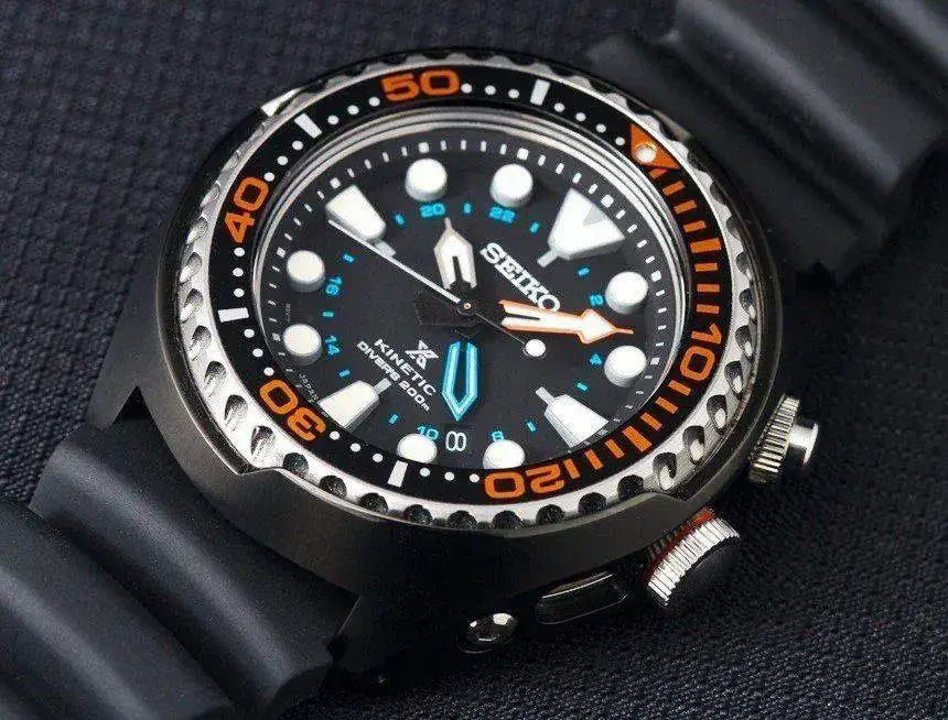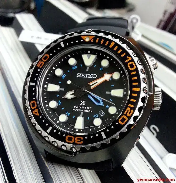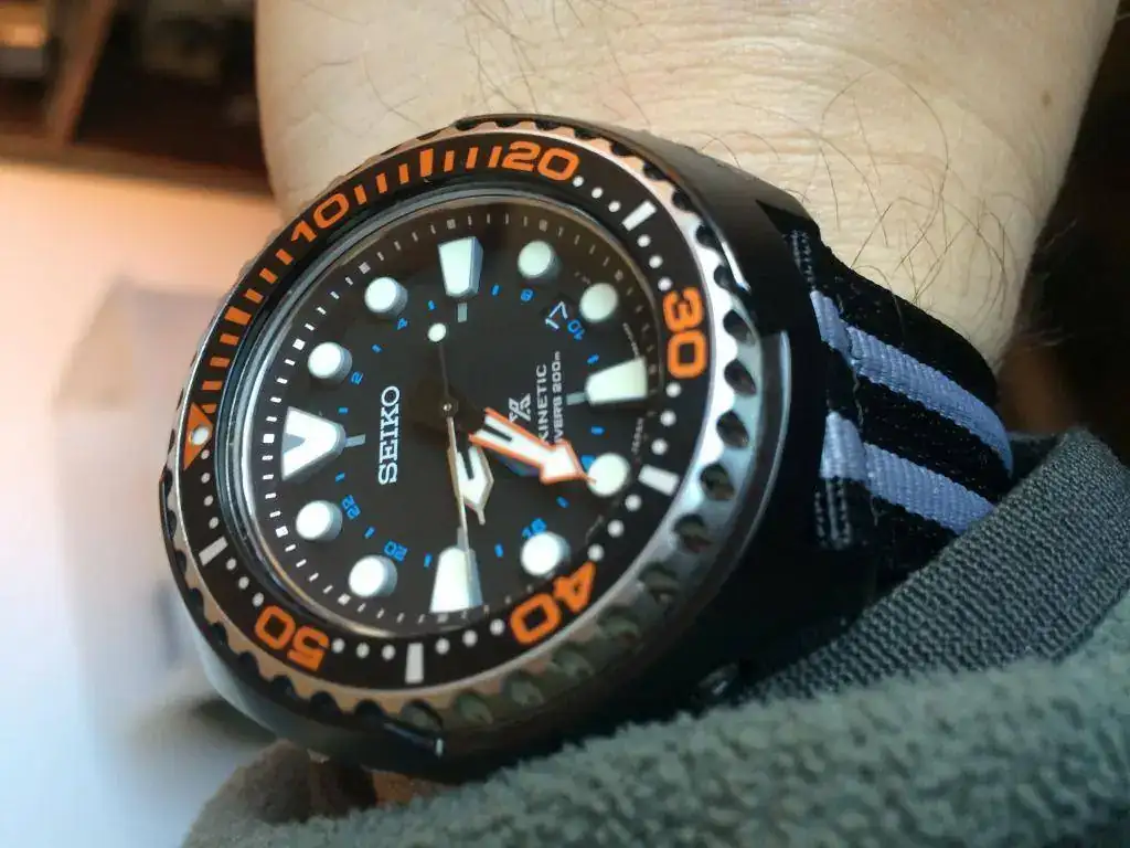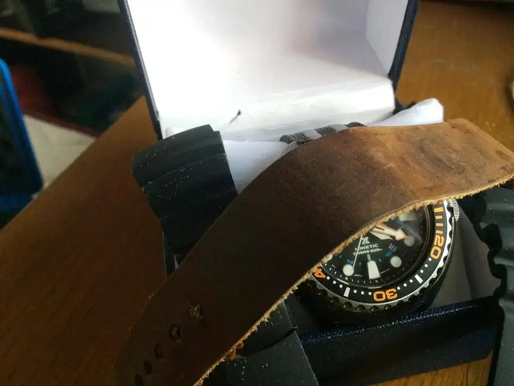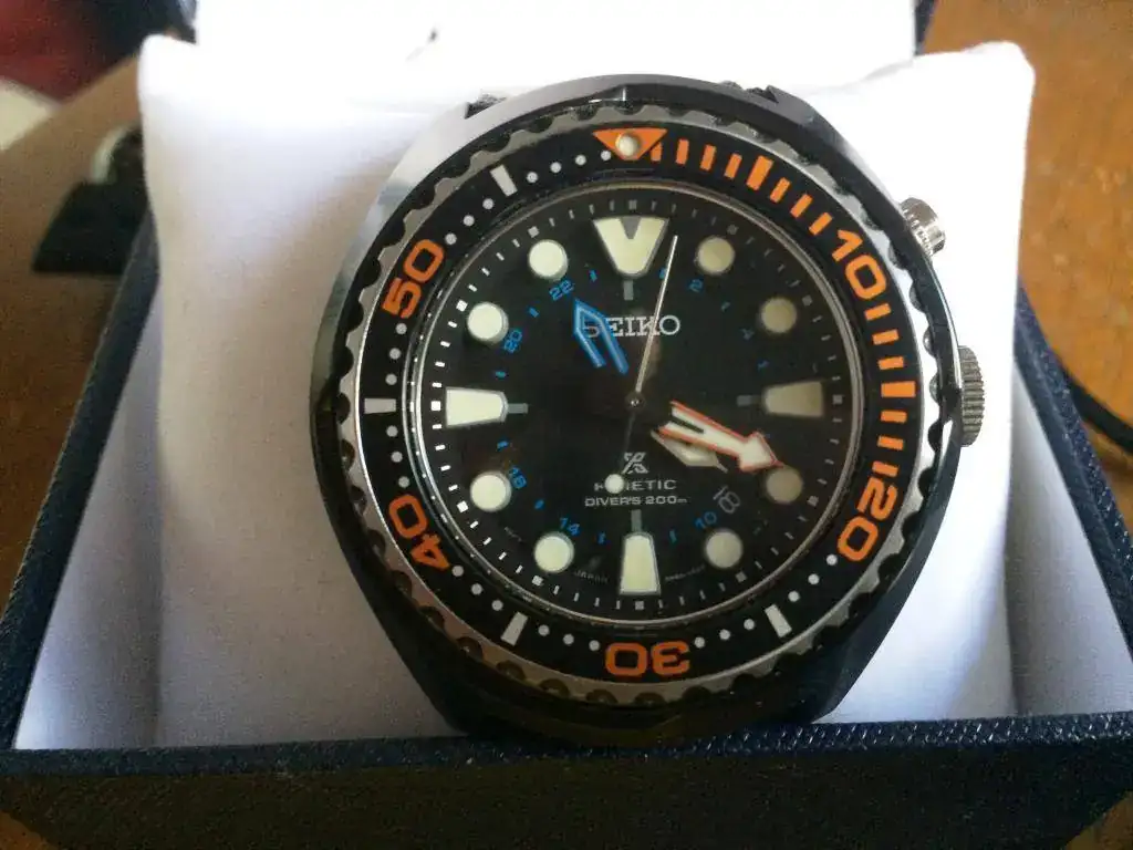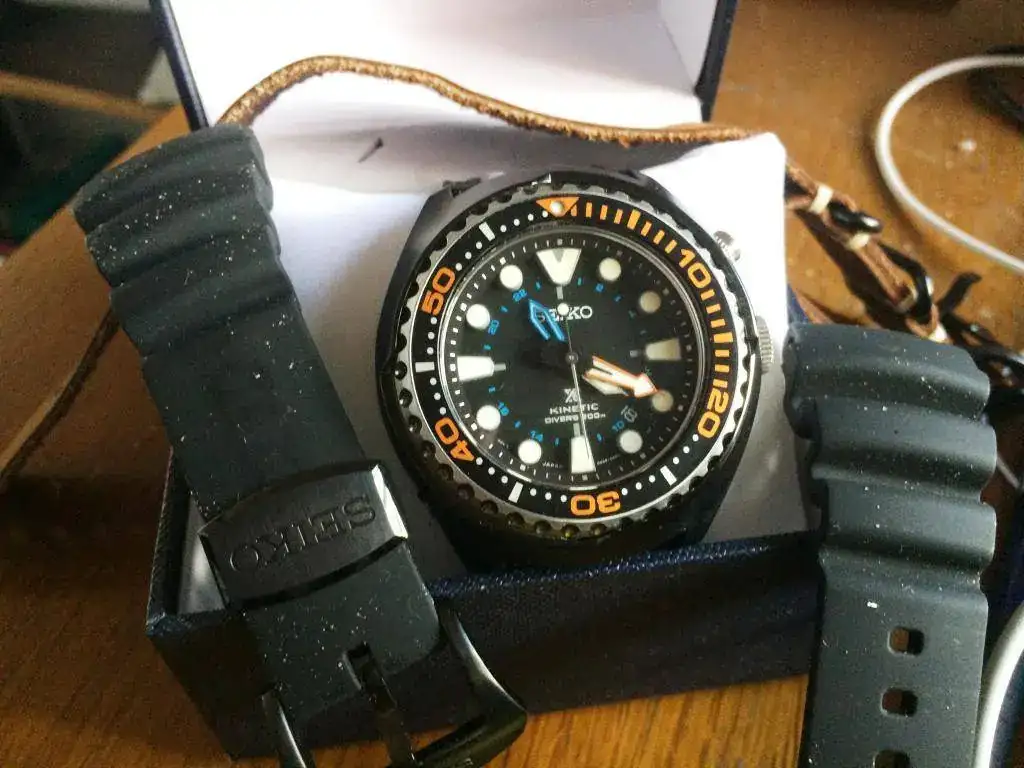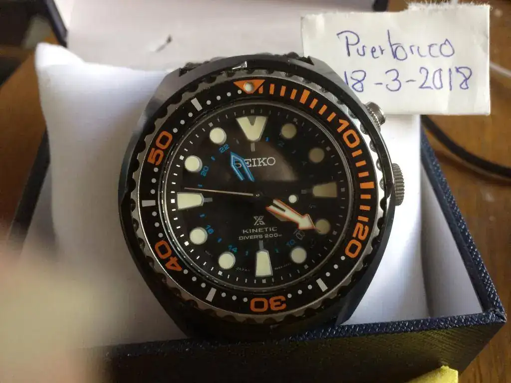 Como uno tiene una caja donde reloj que entra nuevo, otro que sale, le toca a este espectacular diver. 200 metros, kinetic, prospez, impoluto (solo la tapa de atras tiene un pelito), con caja generica, caucho y nato de piel, pero estan cortadas para muñecas de 18-19. Nuevo ronda los 565 euros y yo solo pido 225 (precio mas bajo de todo internet)
