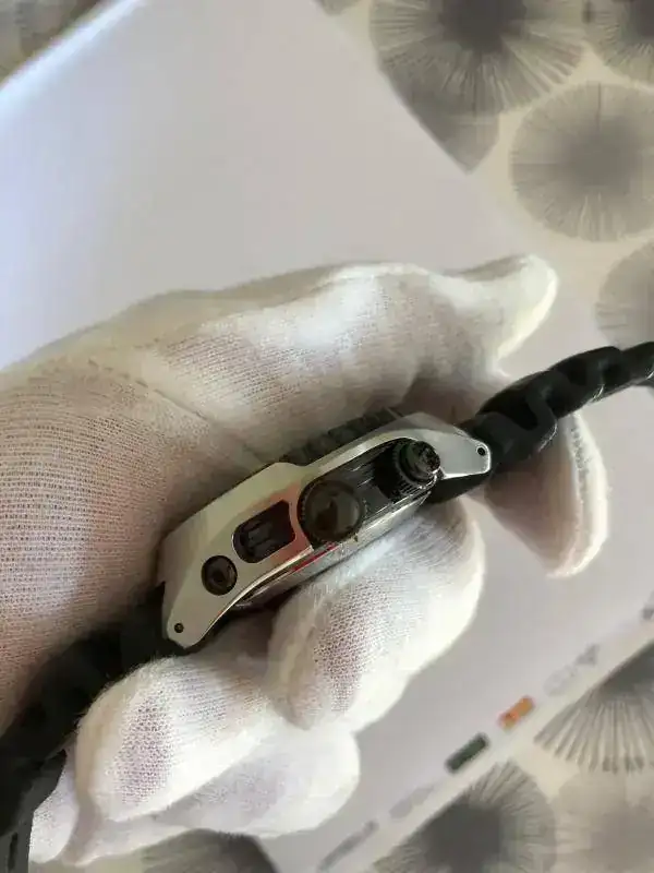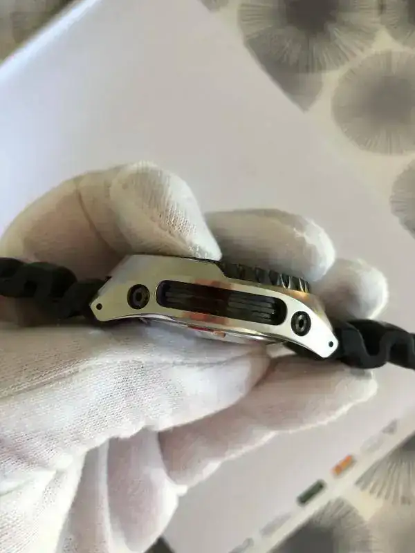 Un reloj de dimensiones generosas pero que se adapta muy bien a la muñeca. Esto se debe a su maravillosa correa de caucho(suave como no había visto ninguna) y a que las asas no son muy grandes y se adaptan a la muñeca.