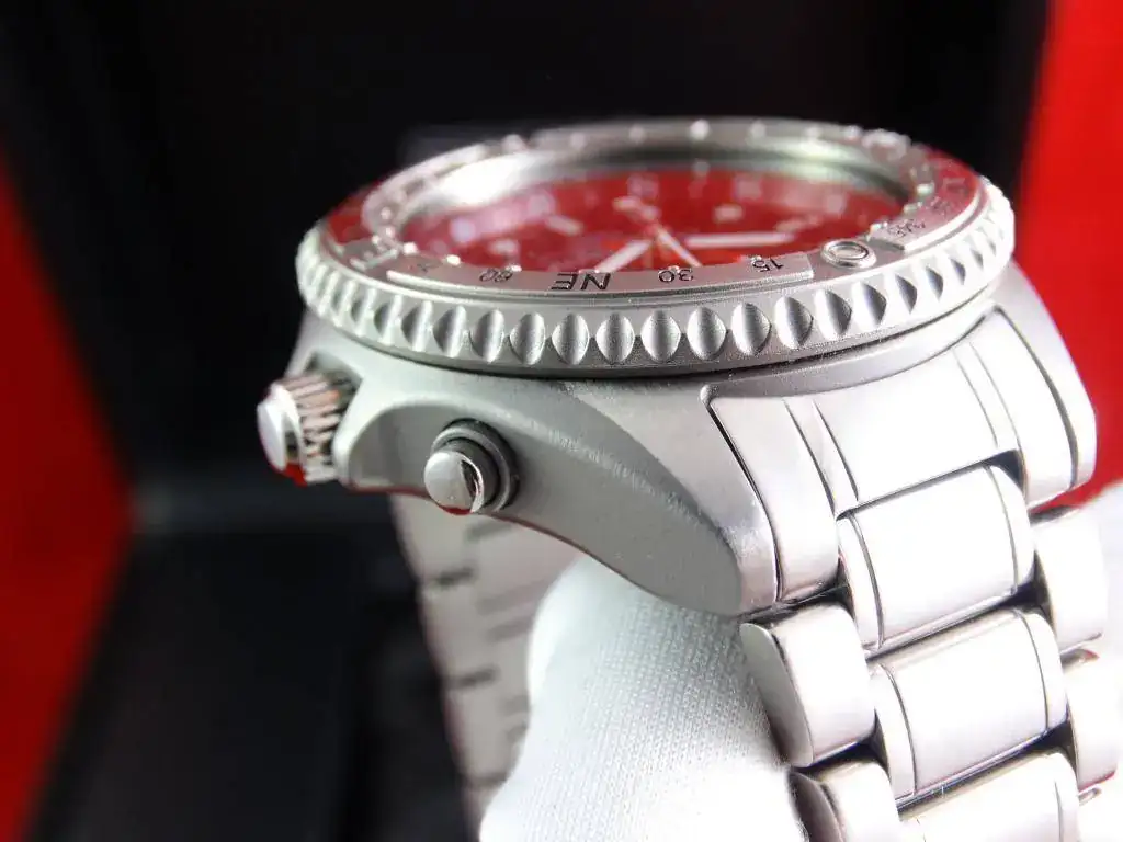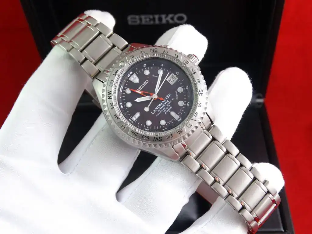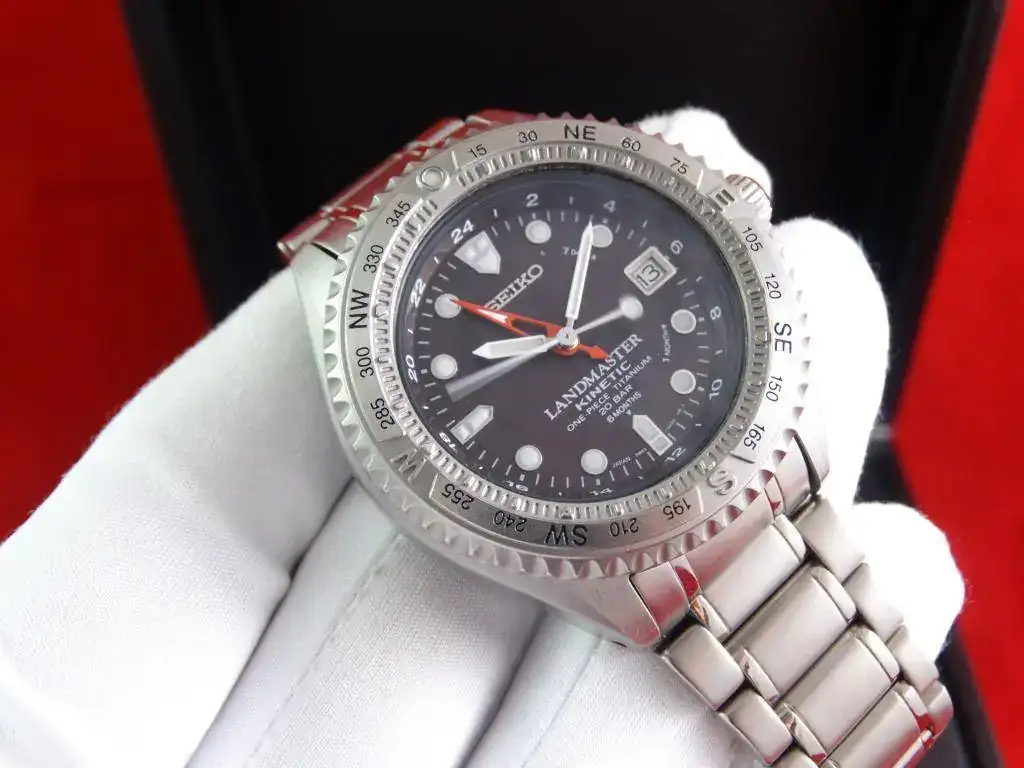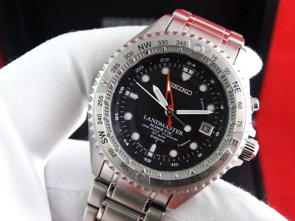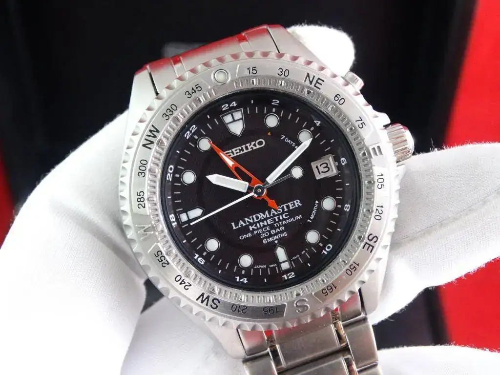 Seiko ha desarrollado una gama muy amplia de relojes abarcando diferentes rangos de precios, calibres y categorías. En esta ocasión se trata del modelo Landmaster, un reloj muy especial construido completamente en titanio, brazalete cómodo y con un deployante que utiliza el famoso sistema de extensión del Marinemaster. Monta un calibre kinetic con indicador de reserva de marcha, fecha y función GMT.