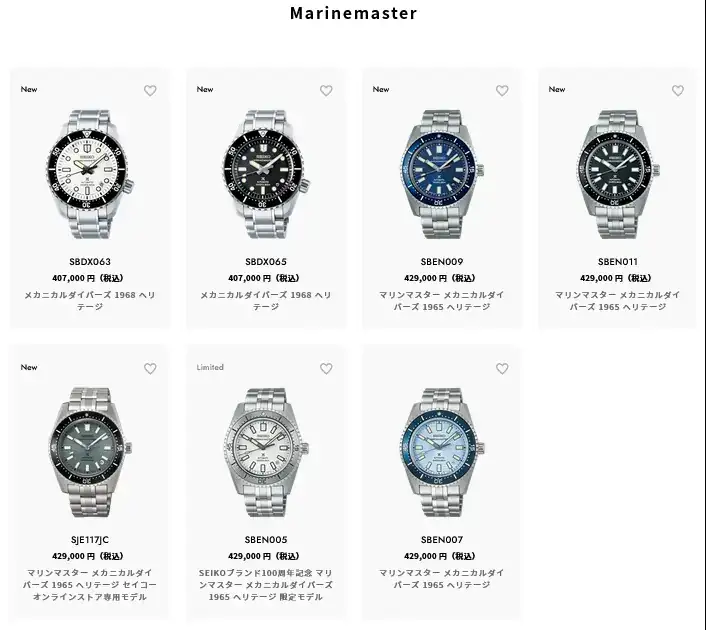 Pero claro, la línea Marinemaster Professional hace siglos que no se renueva, como la línea LX que tampoco se renovó, en la página japonesa ya no existen los LX. Han desaparecido los SpringDrive de la gama Prospex.