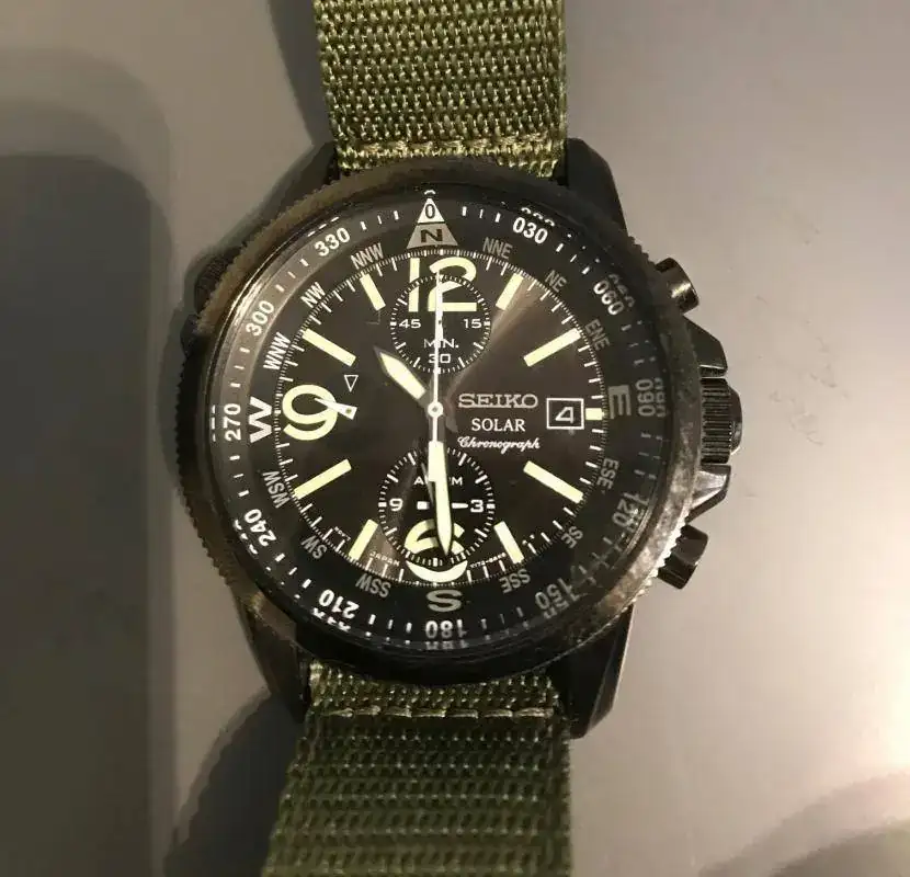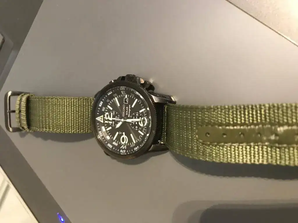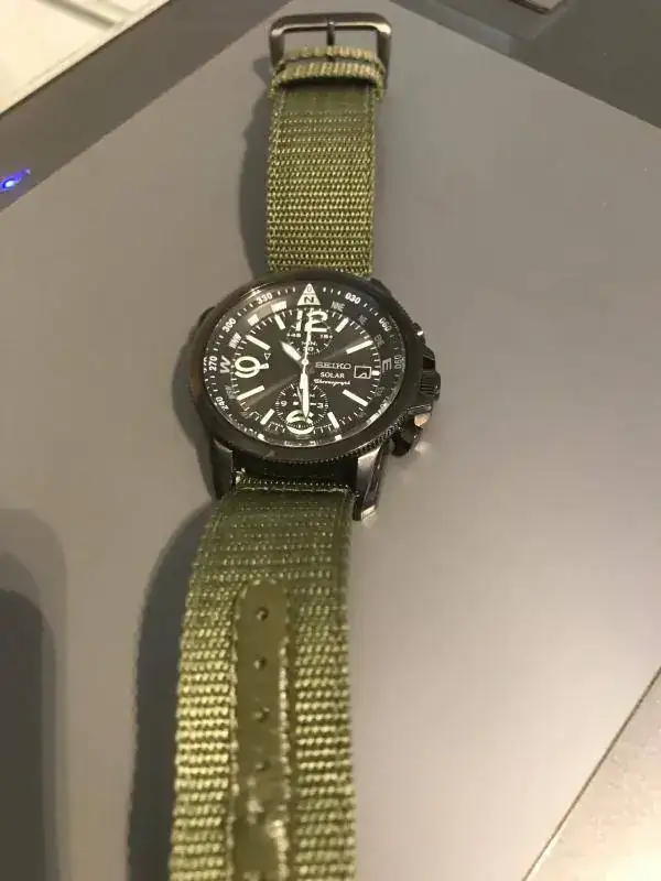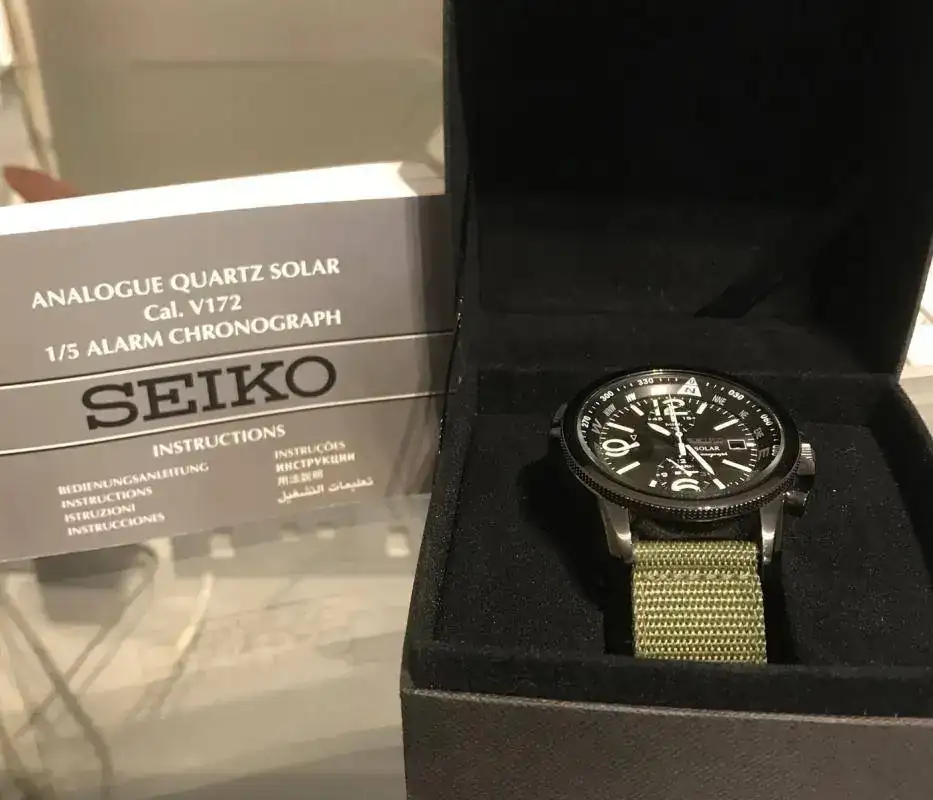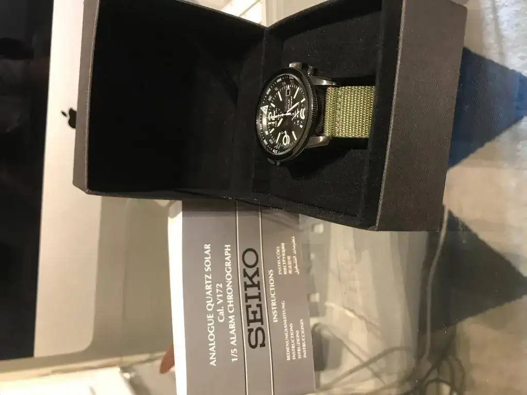 Me deshago en esta ocasión de este Seiko, que habré usado media docena de veces y que ahora está aburrido en la caja. Un crono con unas medida muy ponible (42), cómodo y con función de alarma, aunque nunca la he usado...