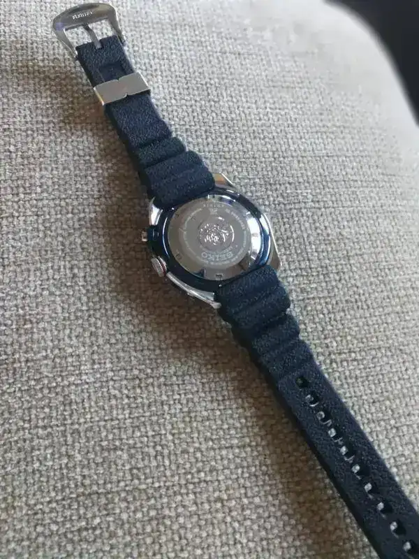 Correa de silicona negra con cierre por hebilla firmada Seiko.
