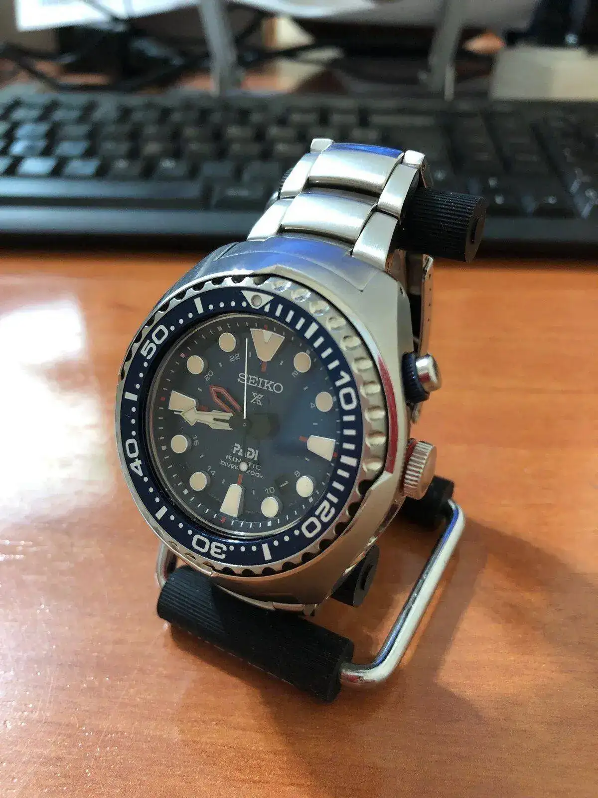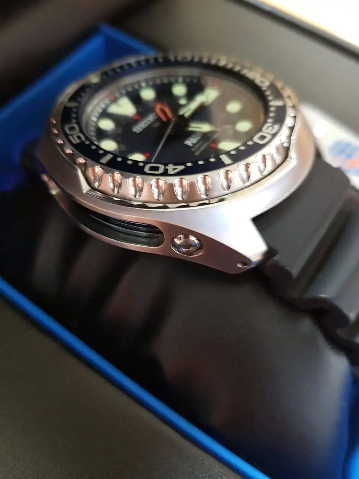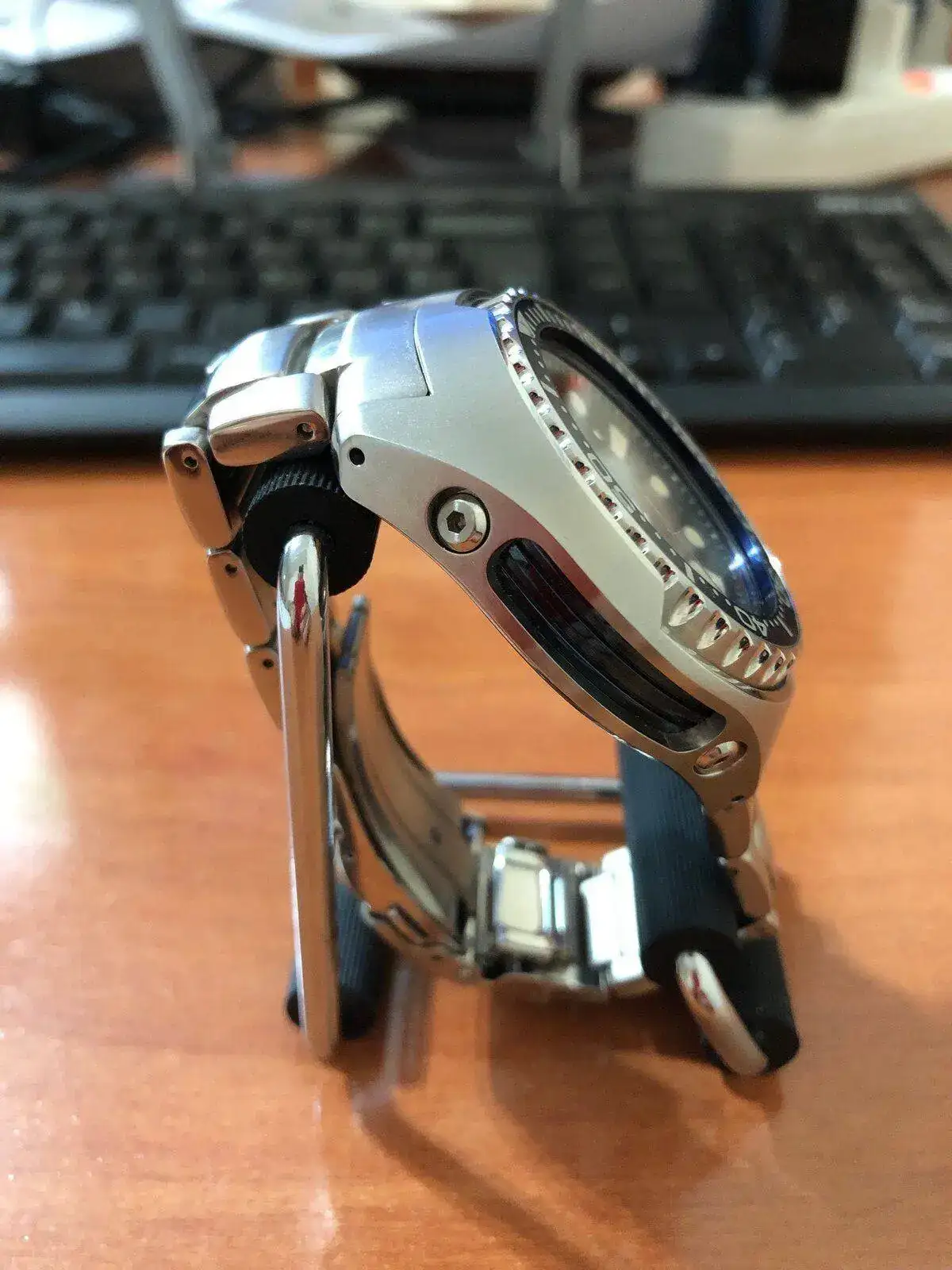 Recordar que este modelo solo se vendía con correa de caucho y la semana pasada le compré el brazalete original de su hermano todo negro, por lo que imaginad cómo está también, impecable.