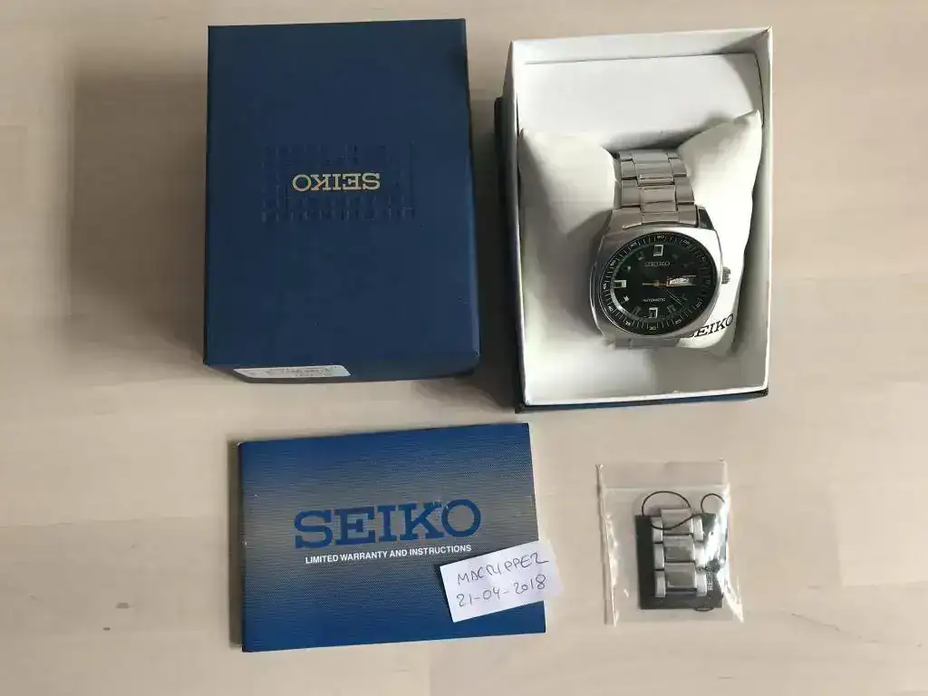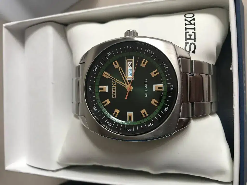 Vendo este Seiko Recraft SNKM97. El reloj ha sido usado, tiene algunas marcas de uso, pero nada a destacar.