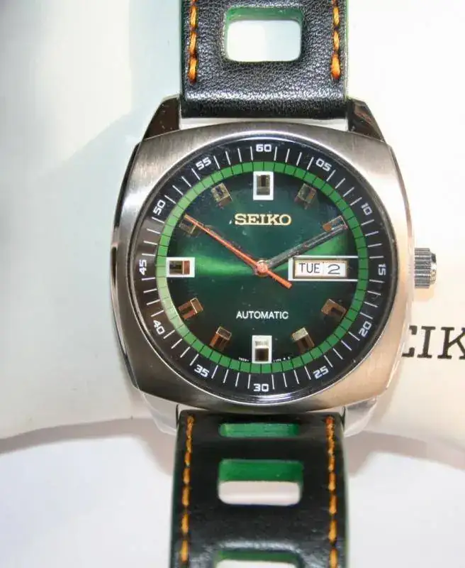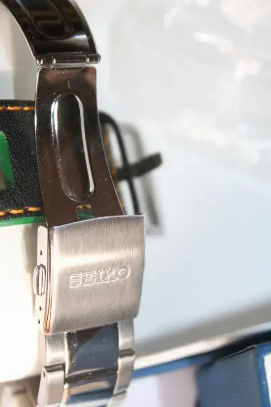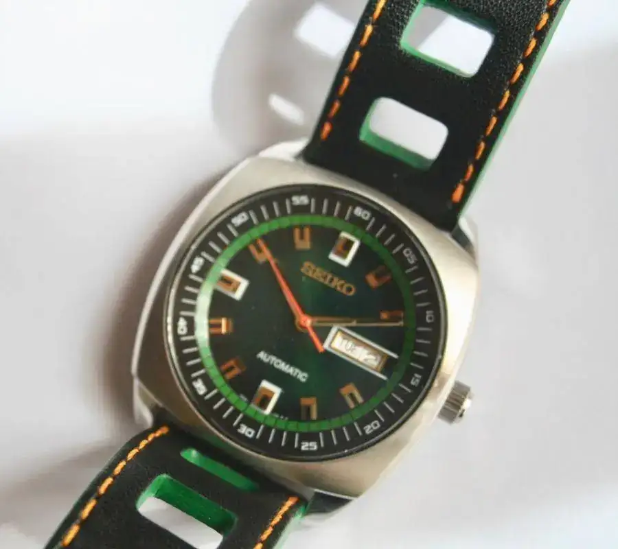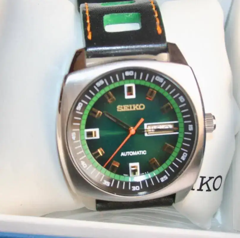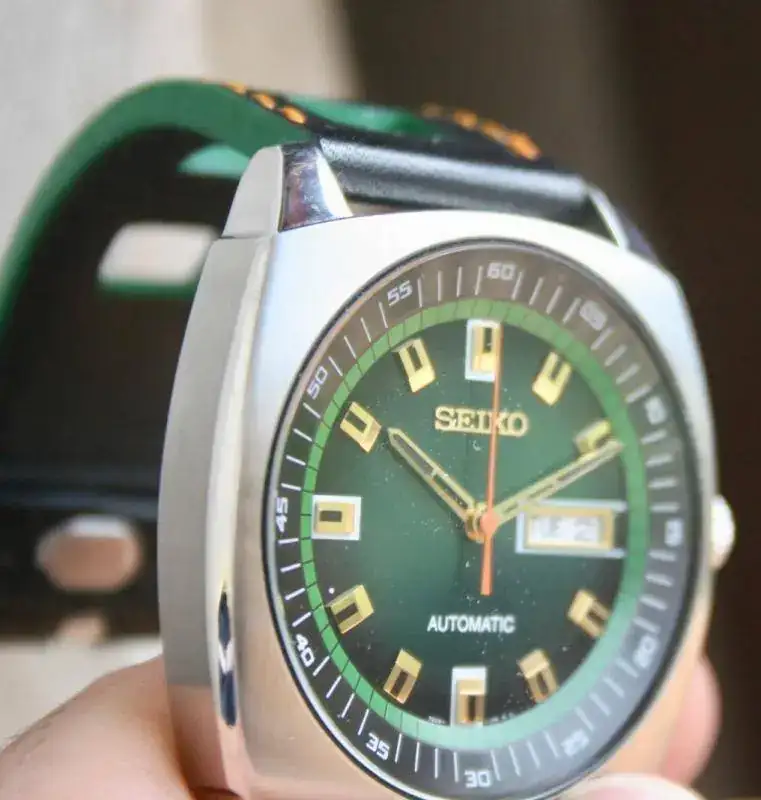 Por ese motivo os ofrezco un reloj sorprendente y peculiar: el Seiko Recraft verde (para mí el más bonito de la colección). Además, encargué expresamente para él una correa, que le queda de escándalo, con sistema de cambio fácil (no hace falta arañar el reloj para cambiarla). Salvo que algo se me haya escapado, el reloj está fenomenal, lo compré prácticamente nuevo y yo lo he usado muy poco.No llega a dos añitos. Además, el armis está perfecto porque se lo quité inmediatamente para ponerle la correa especial.