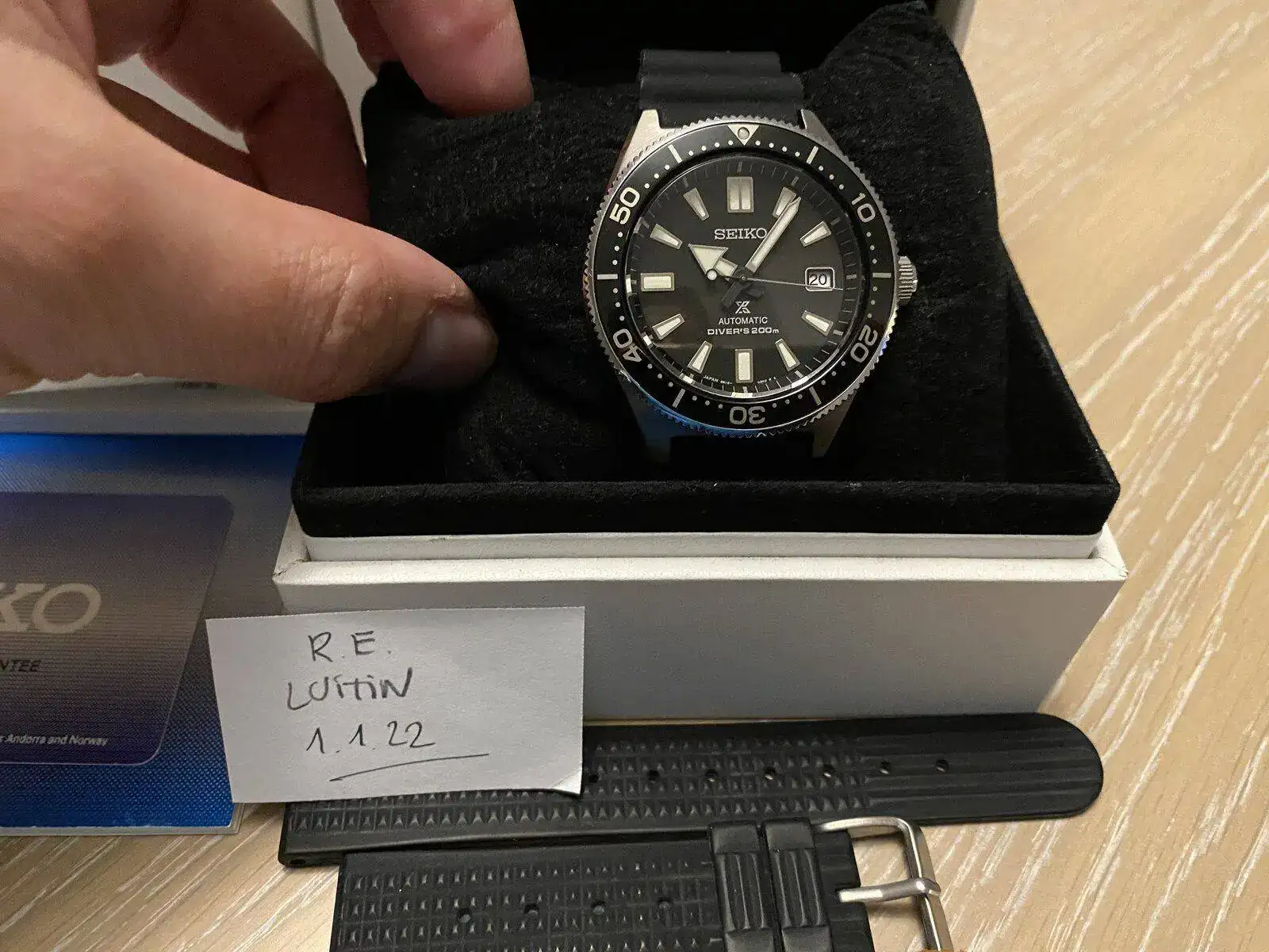 saco para venta sin cambios este Seiko en estado excelente, sin nada que decir, reinterpretacion del modelo del año 1965; espectacular con su caja de 42,6 mm , cristal de zafiro y funcionamiento preciso; está como nuevo con todas las cajas, tarjeta de garantía y factura de compra lleva correa de caucho original seiko mas otra de caucho con relieve aftermarket y una nato de piel marrón. El pvp de este reloj es de 1200€ yo lo saco por menos de la mitad, sin cambios ni relojes a cuenta; gracias y mis mejores deseos de un excelente 2022