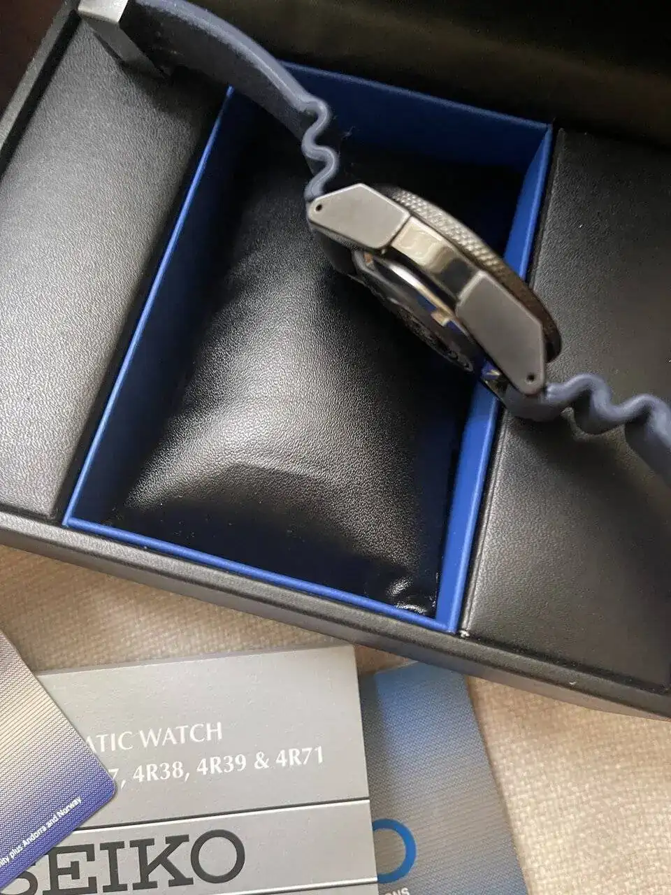El reloj esta en muy buen estado y va muy ajustado. Va con caucho de seiko (así vino) y es una serie limitada. Nunca ha probado el agua … y se ha usado en contadas ocasiones.