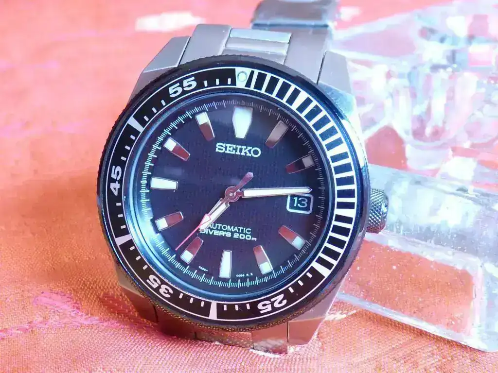 Caja, bisel, cristal y corona inmaculados. Roces en los cuatro últimos eslabones de la parte superior del brazalete (la que va de las doce al cierre) y cierre, de apoyarlo en la mesa y mover el ratón. De no ser por estos roces el reloj parecería sin uso.