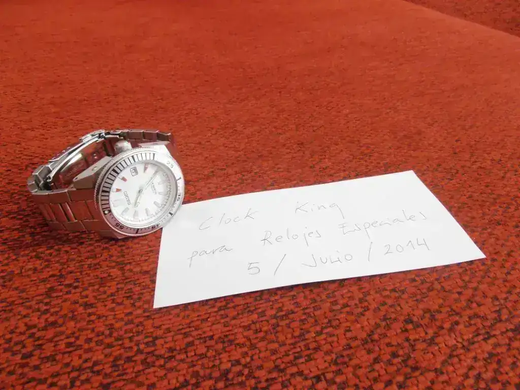 El estado del reloj es muy bueno. Yo se lo compré a un vendedor de Ebay de Málaga que lo había pedido directamente a Asia. Viene, como podréis ver en las fotos, con su caja y papeles. El armis está en muy buen estado con los pellilos típicos de un uso cuidadoso. No tiene eslabones sobrantes pero vale para muñecas de 19 - 19,5 cm como la mía.