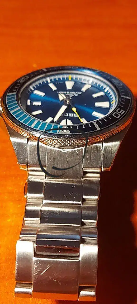 seiko samurai blue lagoon, está en buenas condiciones a excepción de una marca en la caja (la señalo para que se vea ) y , como es normal El armis tiene sus rayones. Lo compré hace algo más de un año, va fenomenal de marcha y de todo, cuando lo compré, el vendedor me comentó que había extraviado la tarjeta de garantía , tengo caja y libro