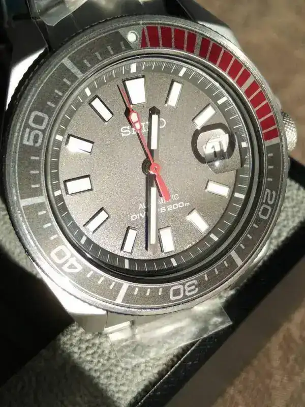 Me encanta la combinación de colores, simplemente me fascina. Me encanta la caja samu, en mi opinión, muchísimo más linda que la tortuga, y el acabado del dial es simplemente sublime (tampoco me gusta tanto el brillante liso del otro)... Por todo esto, el Seiko Samurai Dawn Grey es el diver seiko que yo me compraría hoy mismo si pudiera.