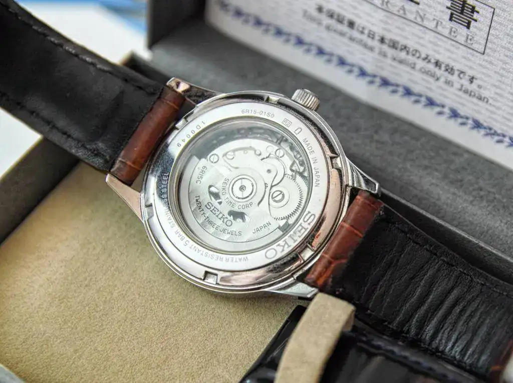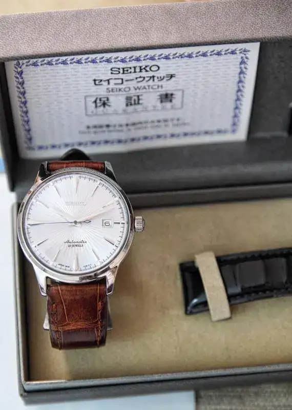 Se trata del archiconocido Seiko SARB065 "Cocktail". Lleva el conocido calibre Seiko automático 6R15 (mismo calibre que Seiko Sumo).
