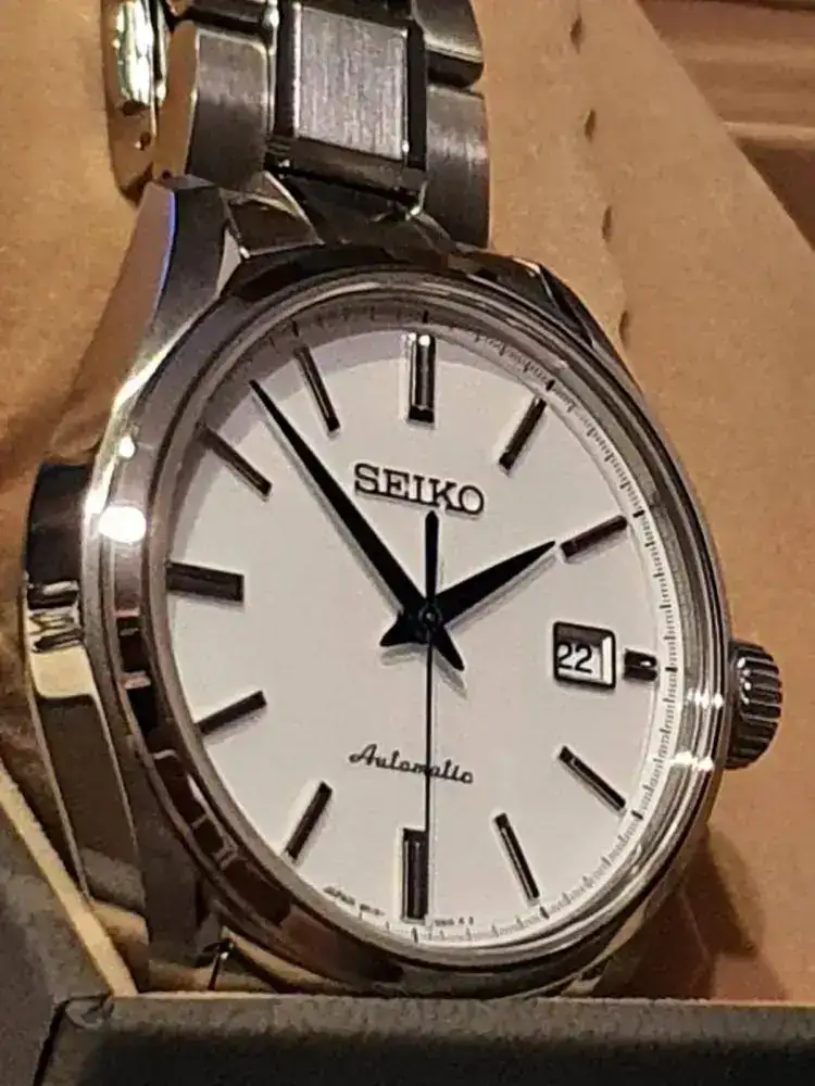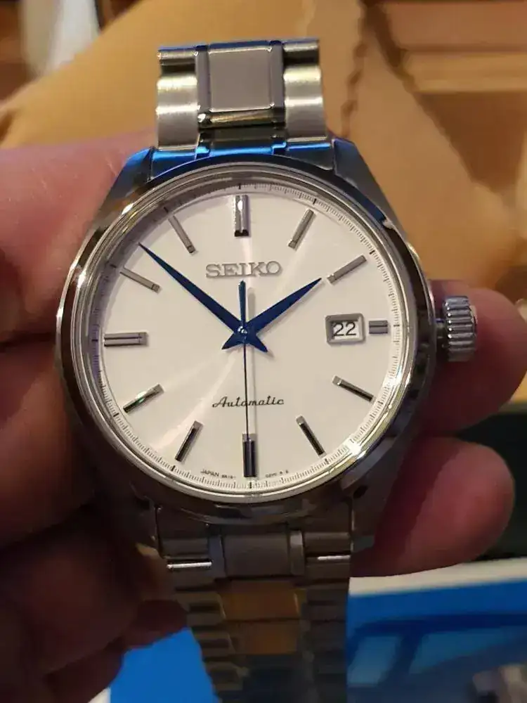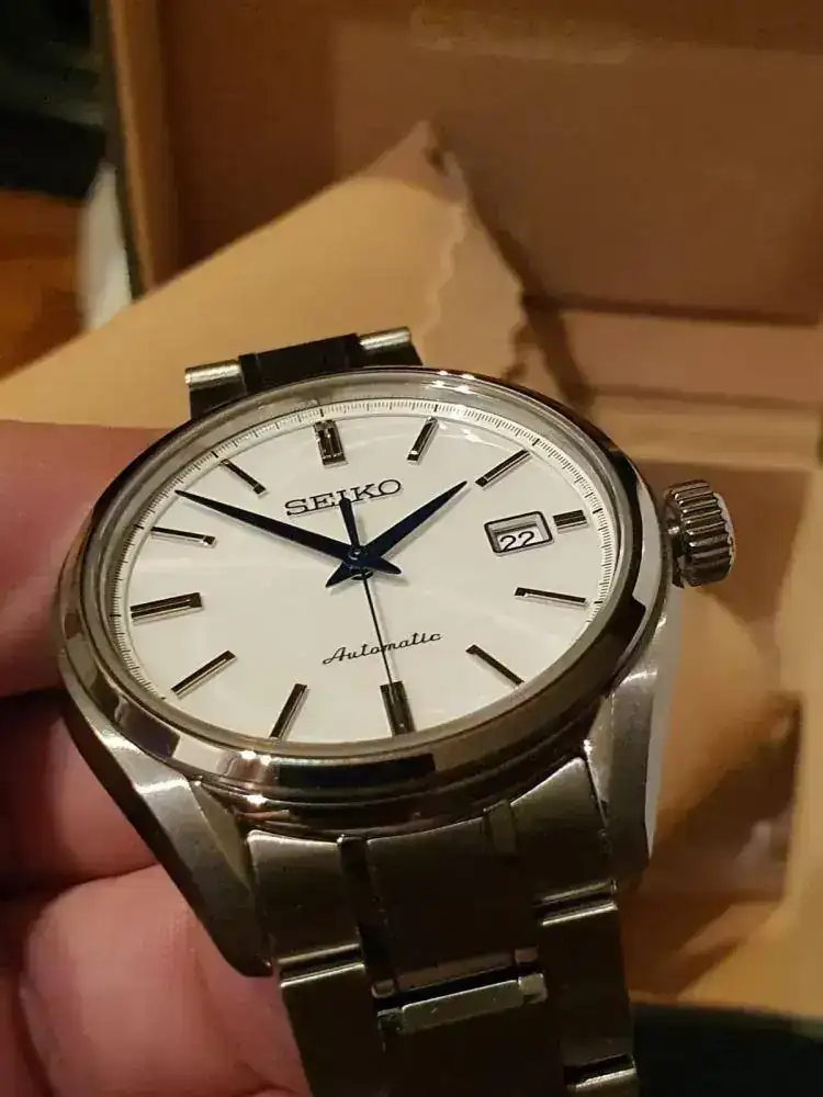 Pongo a la venta un reloj muy especial, el sarx033 exclusivo del mercado japonés y que actualmente esta fuera de producción, lo que hace que sea difícil de conseguir y que con aduanas, gastos de gestión etc, se dispare de precio, el modelo es muy parecido al conocidísimo Sarb pero con un tamaño mas grande de 40 sin corona y unos acabados superiores en el pulido de la caja y correa de acero muy superior, llamado el mini GS por su parecido, salvando las distancias en precio y acabados con los famosos GS.