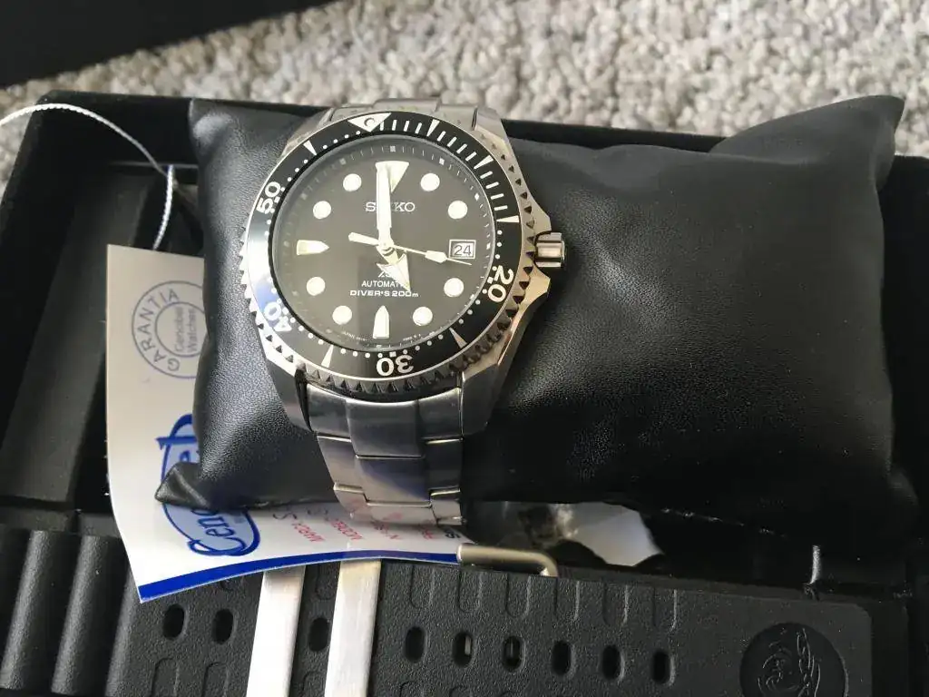 Su estado diría que es muy bueno. Armis en buen estado con las típicas marcas de uso. Viene con un extensor de buceo + un cierre de otro seiko. Viene completo , caja y papeles.
