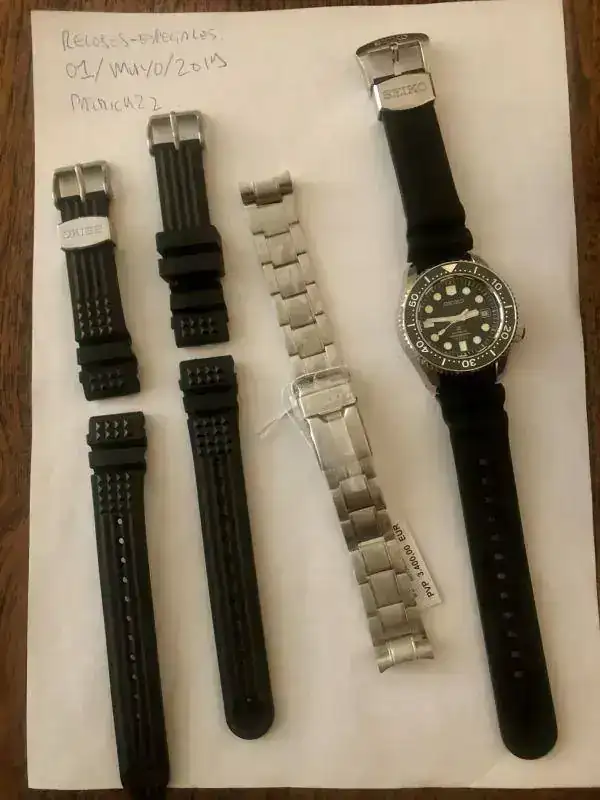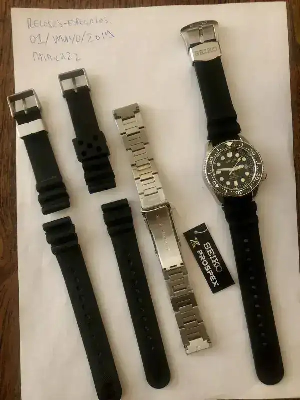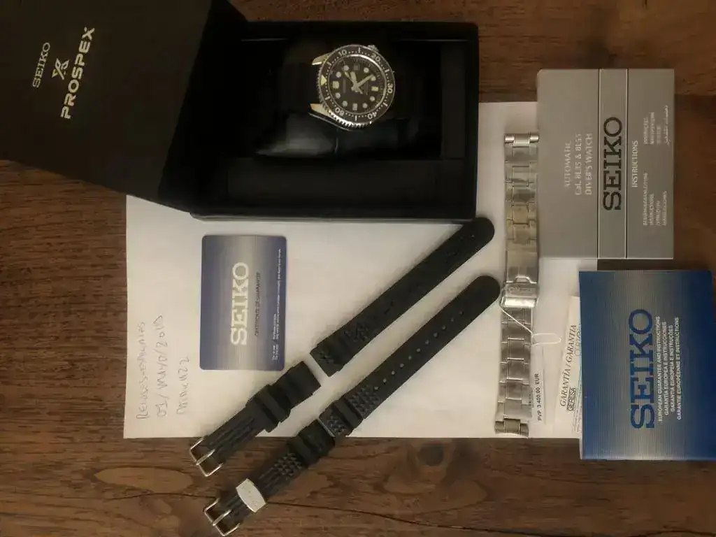 Reloj comprado nuevo por mi en comercio Español, en perfecto estado sin ninguna señal. Brazalete original de acero nunca usado lleva plásticos, caucho de serie utilizado Completo de todo. Añado dos caucho de marine master nuevos.